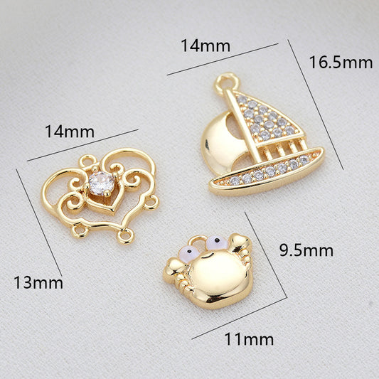2 Segelboot-Blumenkrabben-Charm-Anhänger, Emaille, Epoxidharz, 14 K GF, Strass verziert
