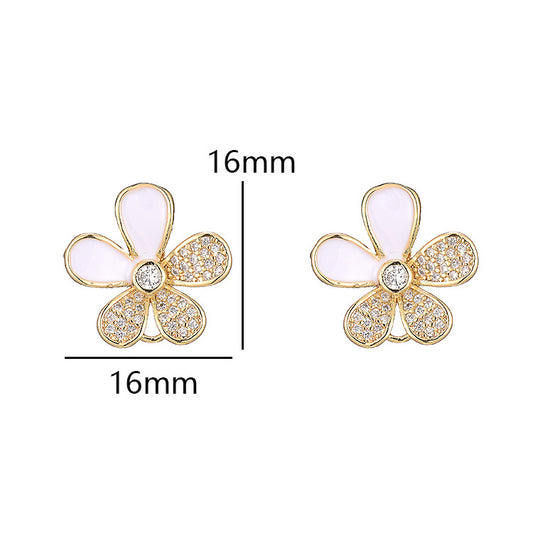 4 Blumen-Ohrstecker mit Schlaufe, Emaille-Epoxidharz-Ohrring mit 14-Karat-GF-Strassverzierung