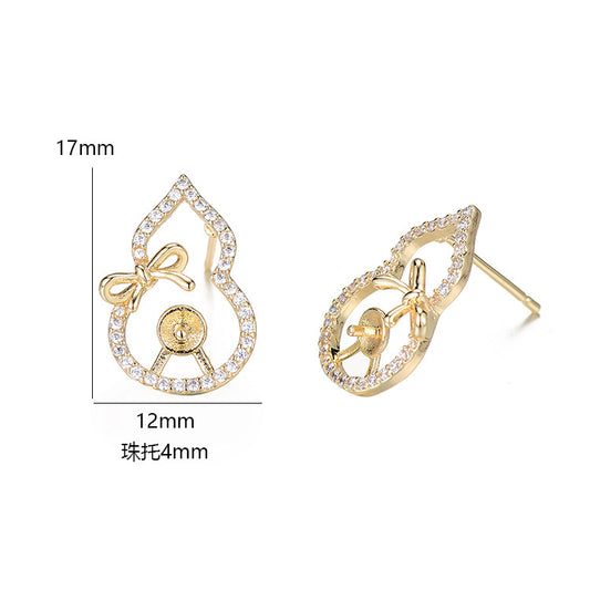 4 Kürbis-Ohrstecker, mit Strasssteinen verziert, 14-Karat-GF-Ohrring, halbgebohrte Perle, Rohling