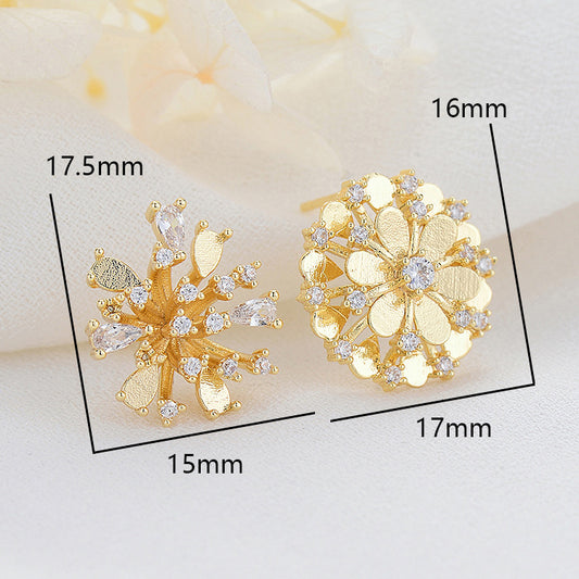 4 Ohrstecker mit Blumenmuster, 14 K GF, mit Strasssteinen verziert