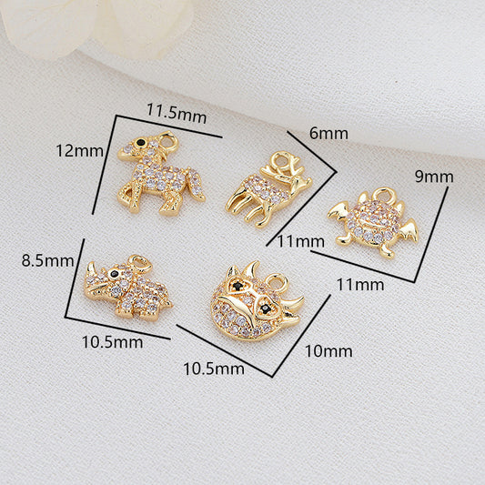 2 Pferd Rentier Fledermaus Nashorn Monster Charm Anhänger 14K GF Strass verziert