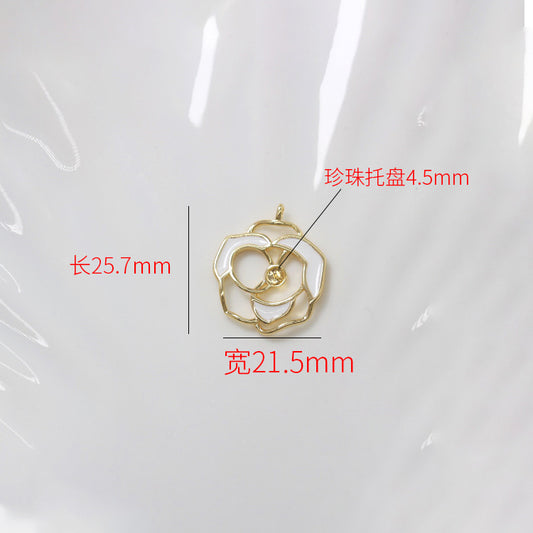 2 Rosen-Blumen-Charm-Anhänger, Emaille, Epoxidharz, 14 K GF, halbgebohrte Perle, Rohling