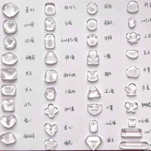 100 Stück Wasserwellen-Kuppel, rund, quadratisch, oval, herzförmig, rechteckig, Bohnen-Diamant-Dreieck, transparenter Glas-Cabochon, flache Rückseite, Vergrößerungseinsätze