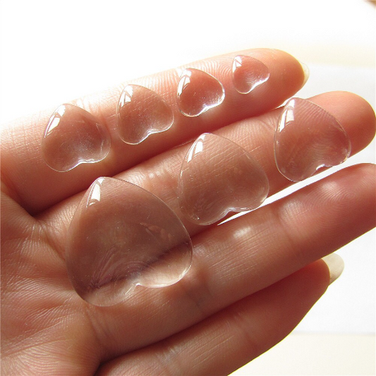 50 Herz-Klarglas-Cabochons, Herzkuppeln mit flacher Rückseite, Vergrößerungseinsätze, transparente Kuppeln, 8 mm – 62 mm
