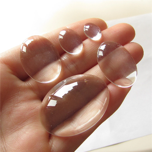 50 Stück ovale Klarglas-Cabochons, elliptische Kuppeln, flache Rückseite, Vergrößerungseinsätze, transparente Kuppeln, 10 x 8 mm – 47 x 62 mm