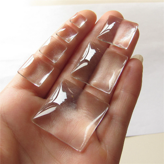 Bulk 50 quadratische Klarglas-Cabochons mit doppelter, flacher, transparenter Vergrößerung, 8 mm, 10 mm, 12 mm, 14 mm, 15 mm, 16 mm, 18 mm, 20 mm, 25 mm, 30 mm, 38 mm