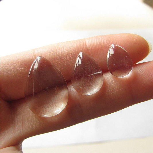 Bulk 50 tropfenförmige klare Glas-Cabochons, Wassertropfen-Kuppeln, flache Rückseite, Vergrößerungseinsätze, transparente Kuppeln, 14 x 10 mm, 18 x 13 mm, 25 x 18 mm, 30 x 20 mm