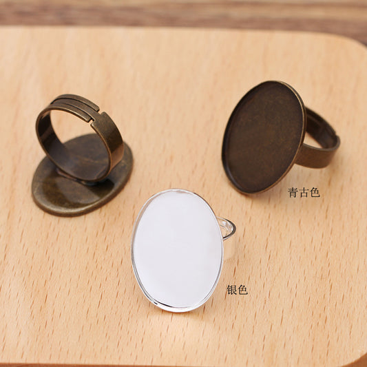 100 zu öffnender Lünettenbecher-Ring, Bronze, versilbert, 18 x 25 mm, ovaler Cabochon, leere Basis, Edelsteinfassung