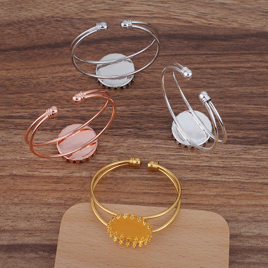 50 Kronenrand, zweireihiger, offener Kreis-Armreif, 18 kg, 20 mm runder Cabochon-Rohling, Edelsteinfassung