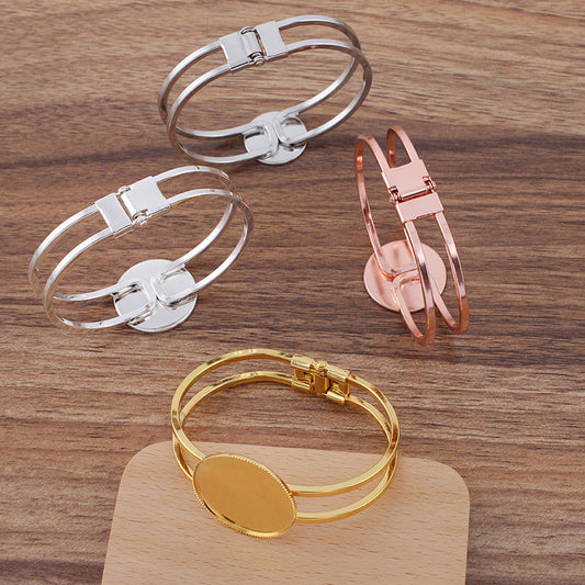 5 Kronenrand-Bezel-Cup, zweireihiger, zu öffnender Kreis-Armreif, 18 kg, 25 mm, runder Cabochon-Rohling, Edelstein-Fassung