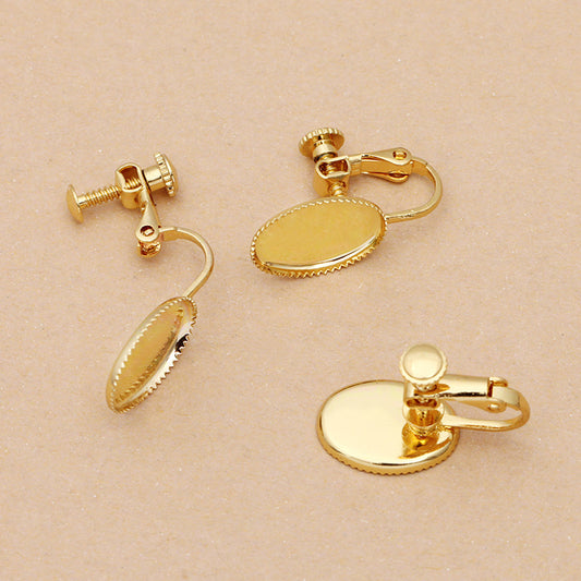 Kopie von 100 Ohrsteckern ohne Piercing mit gezackter Kante und Lünette, 18 kg, 10 x 14 mm, ovale Cabochon-Edelsteinfassung mit blanker Basis