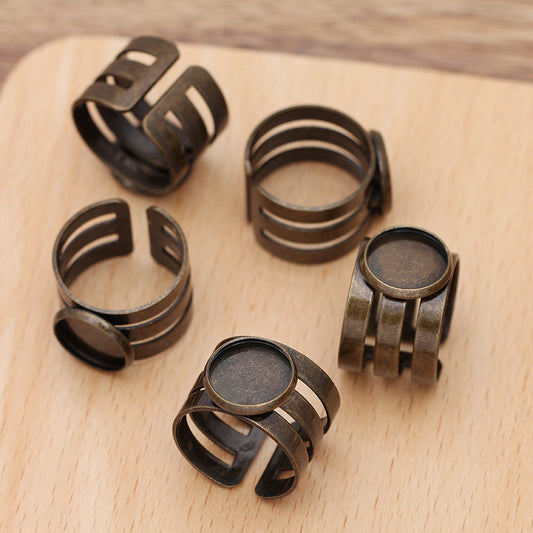 100 klobige Lünette, offener Kreis, dreireihiger Ring, 18 kg, 12 mm, runde Cabochon-Edelsteinfassung mit leerer Basis