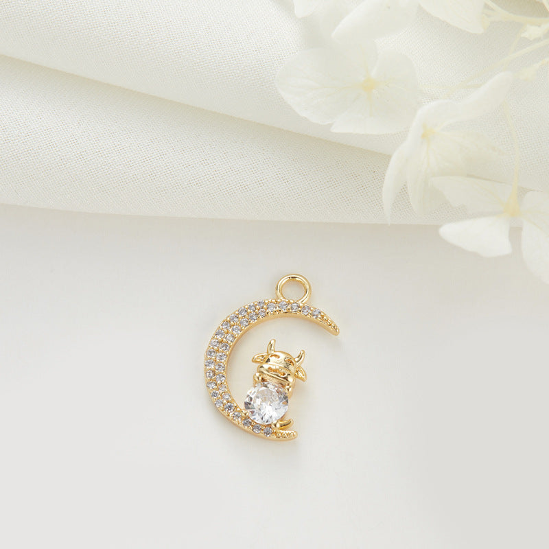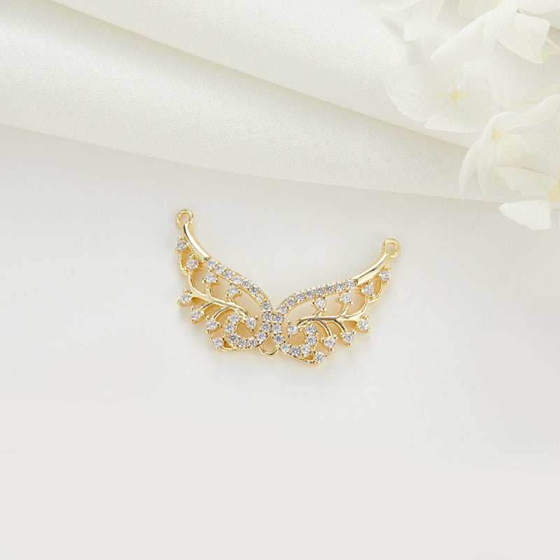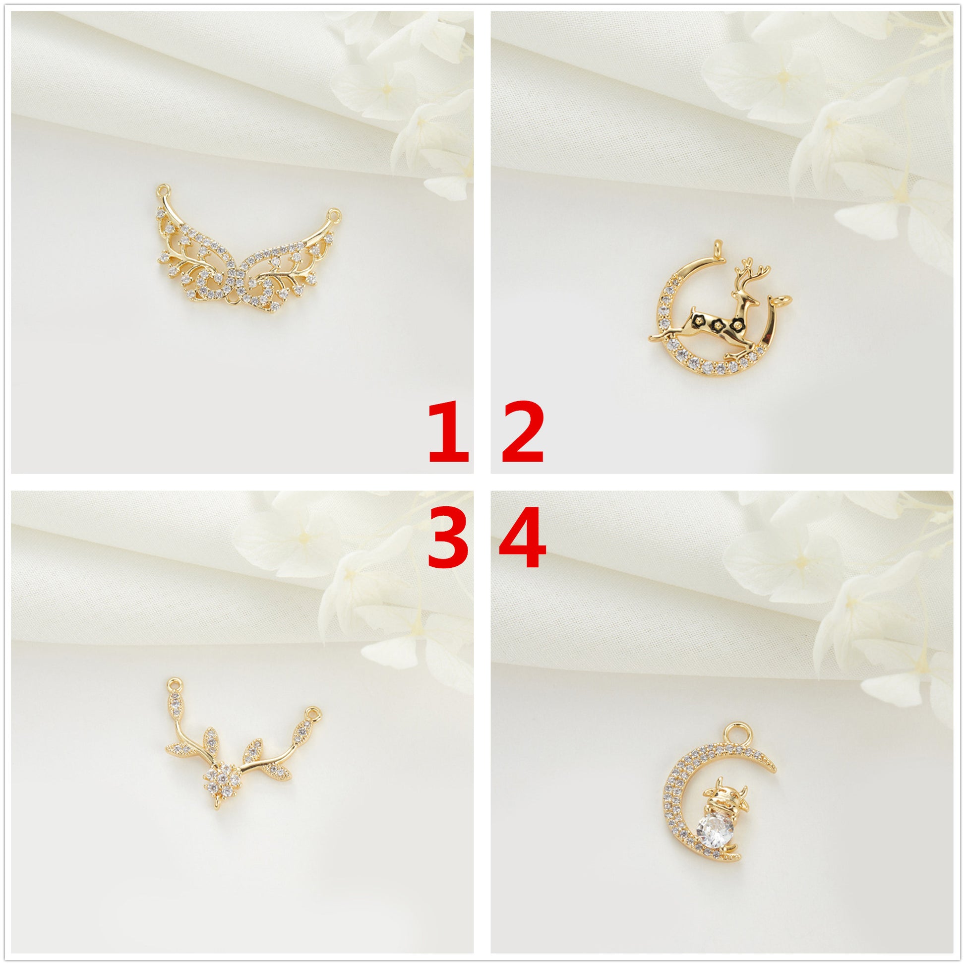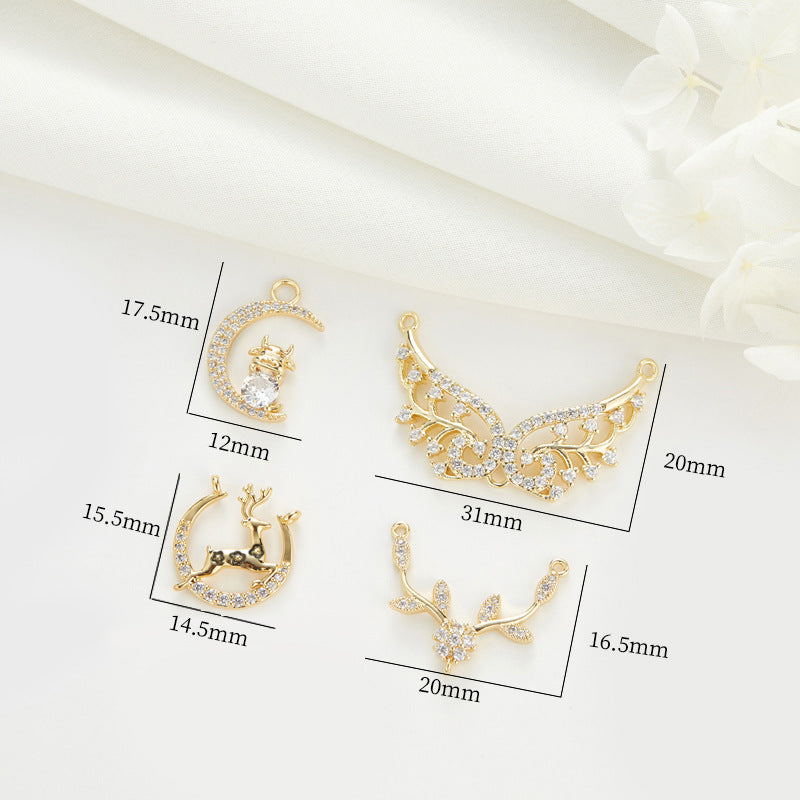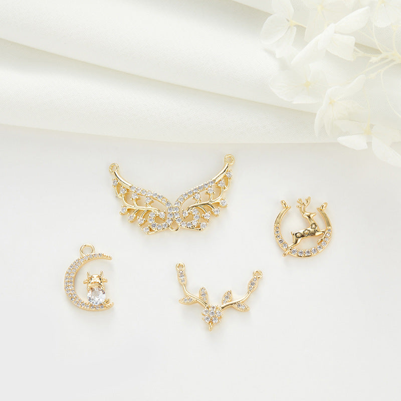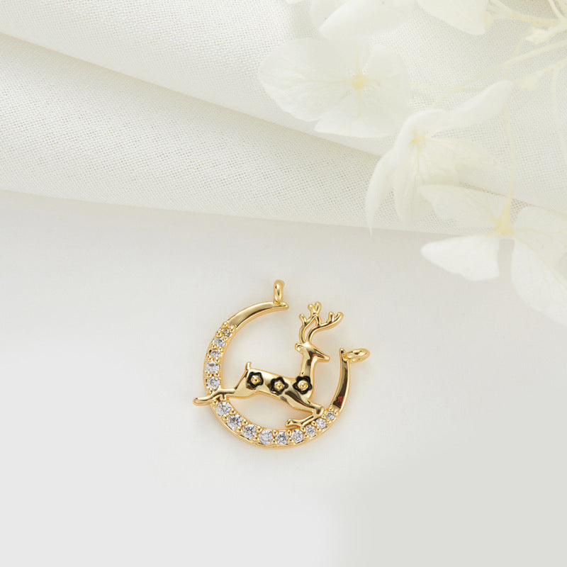 2 Engelsflügel-Rentier-Mond-Charm-Anhänger mit Strassverzierung aus 14-karätigem GF