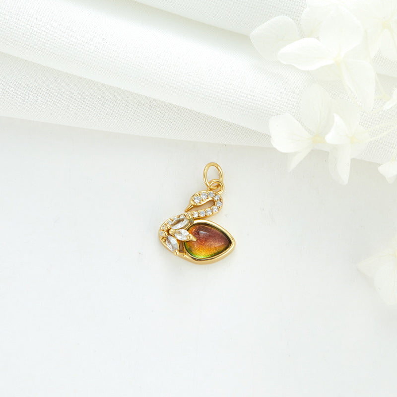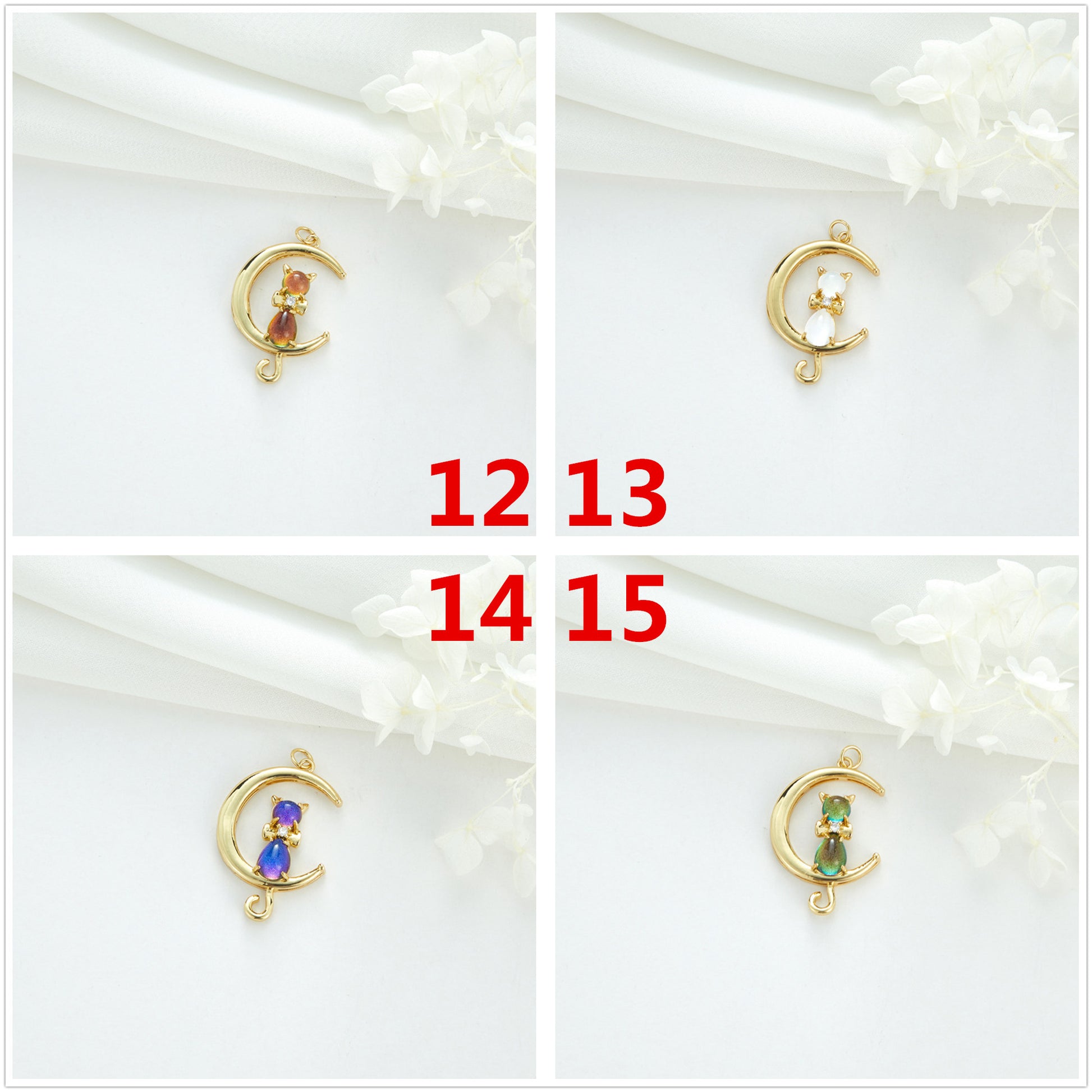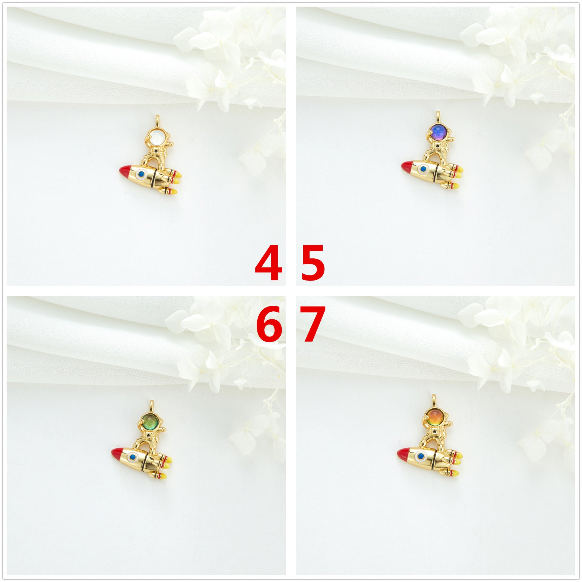 2 Cateye-Steine, Astronaut auf Mond, Rakete, Schwan, Katze, Charm-Anhänger, Harz, Strass, verziert, 14 K GF