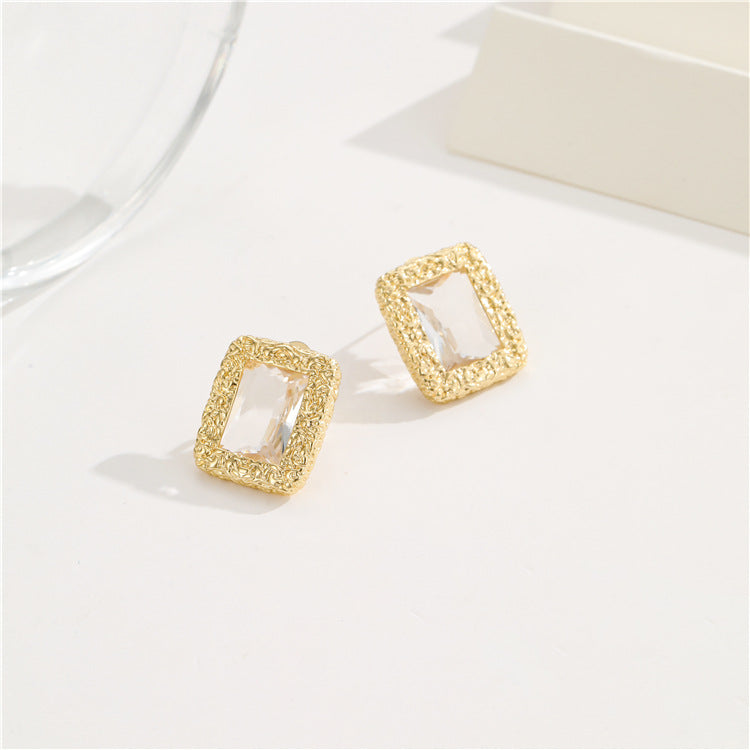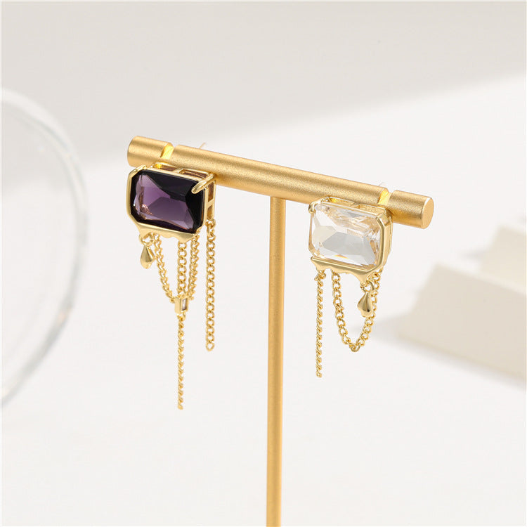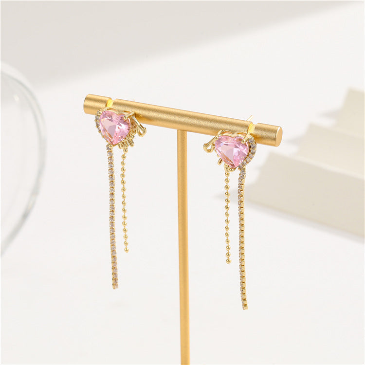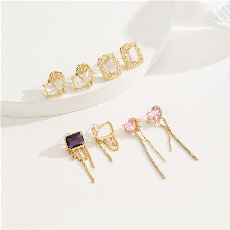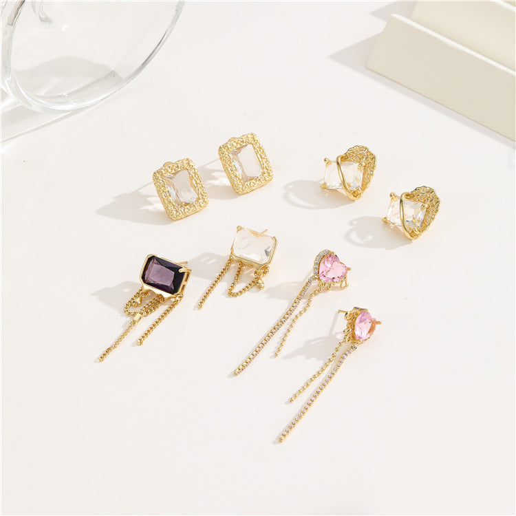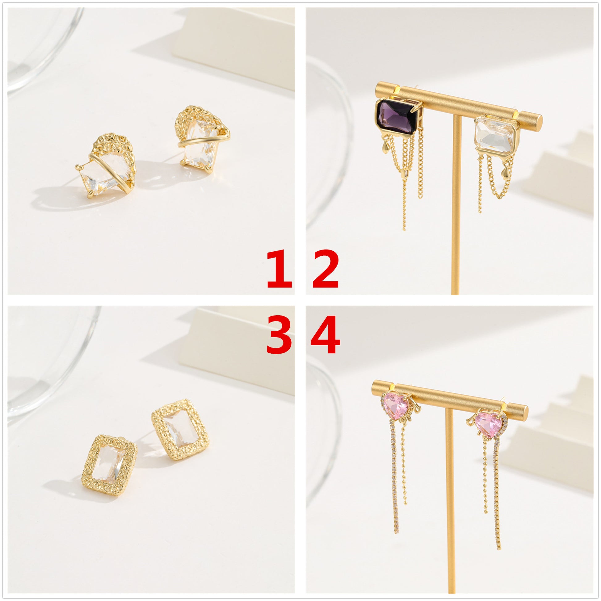 4 quadratische, herzförmige, rechteckige Quasten-Ohrstecker, 14-karätige GF-Strassverzierung