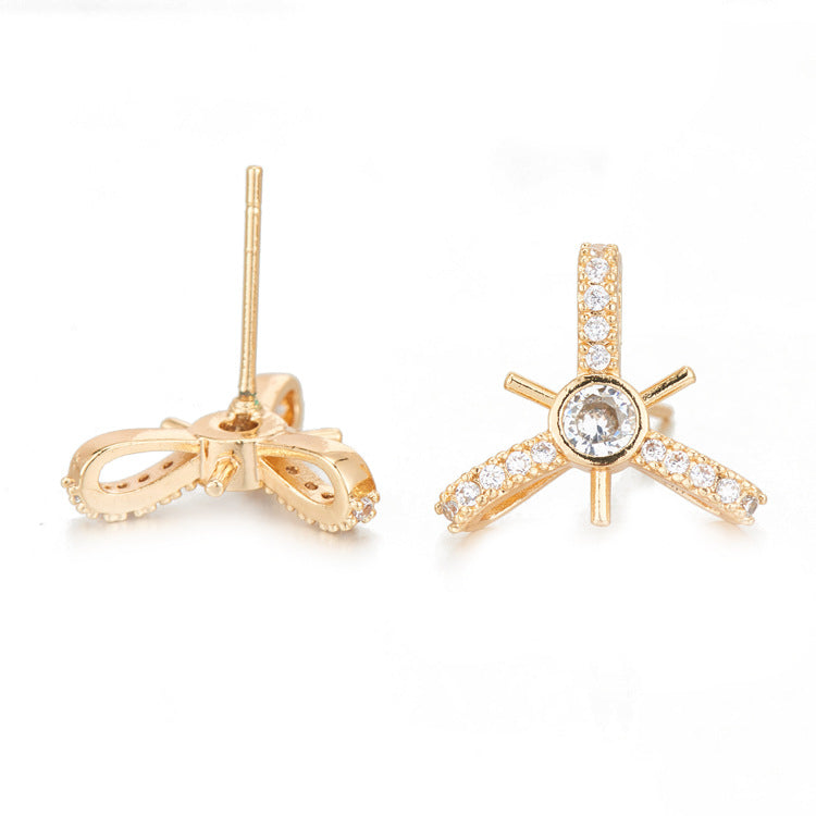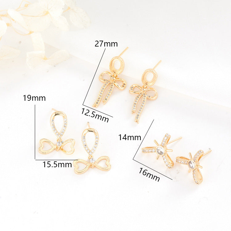 4 Ohrstecker mit Schleife, Strassverzierung, 14-Karat-GF-Ohrring