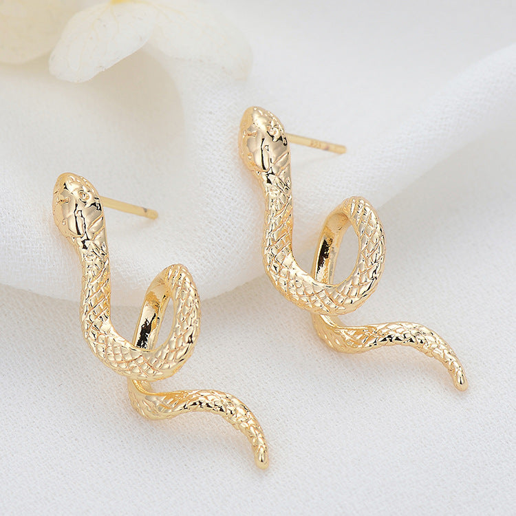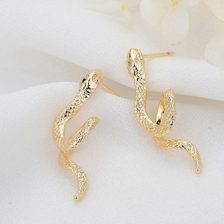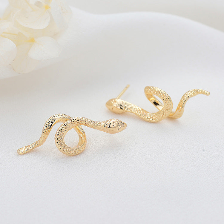 4 Schlangen-Ohrstecker aus 14-karätigem GF
