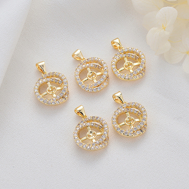 4-Kreis-Charm-Anhänger-Ohrstecker, Statement-Ring, Strassverzierung, 14-Karat-GF-Ohrring, halbgebohrte Perle, Rohling