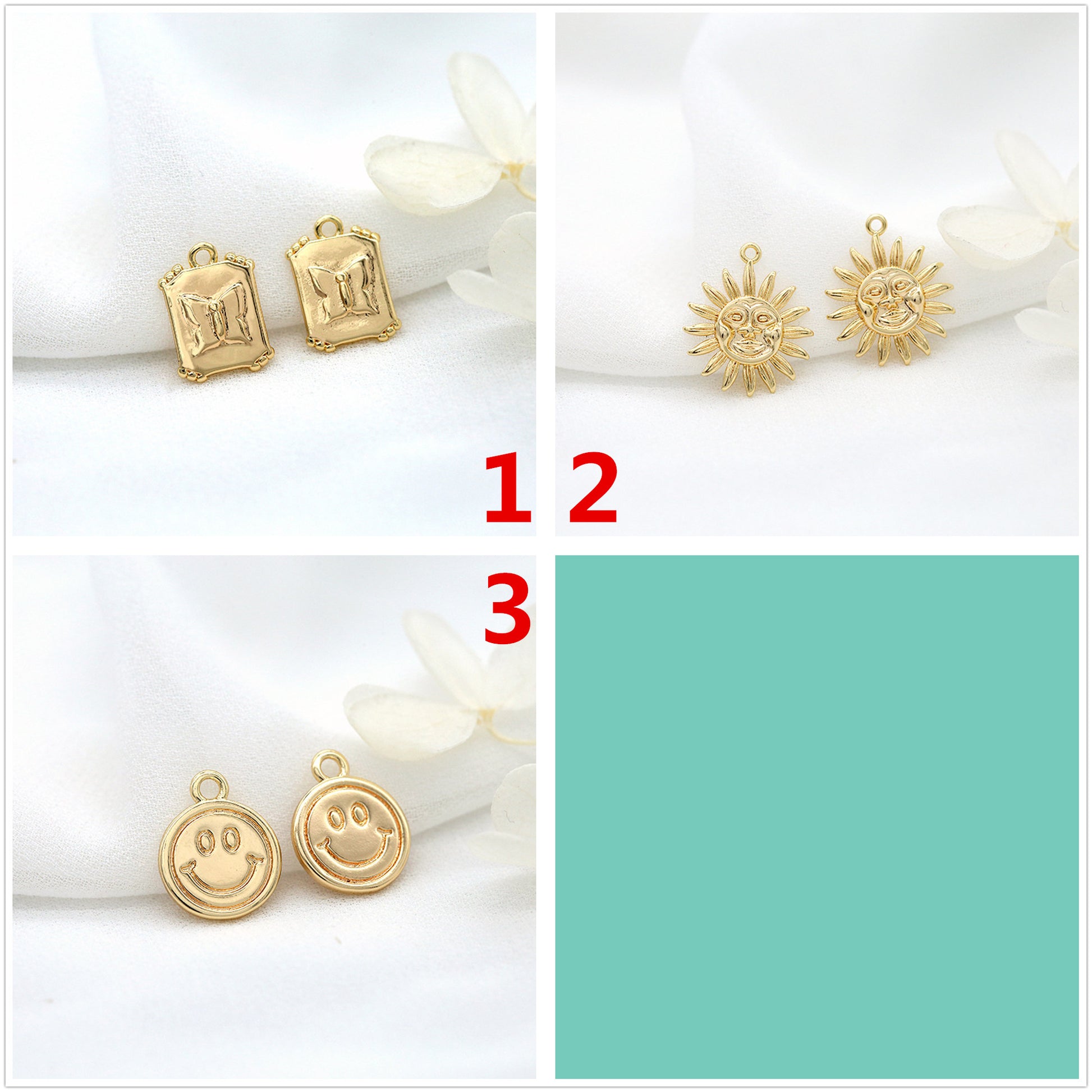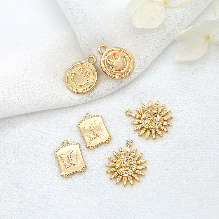 10 Schmetterling-Sonnen-Lächeln-Gesicht-Charm-Anhänger aus 14 Karat GF