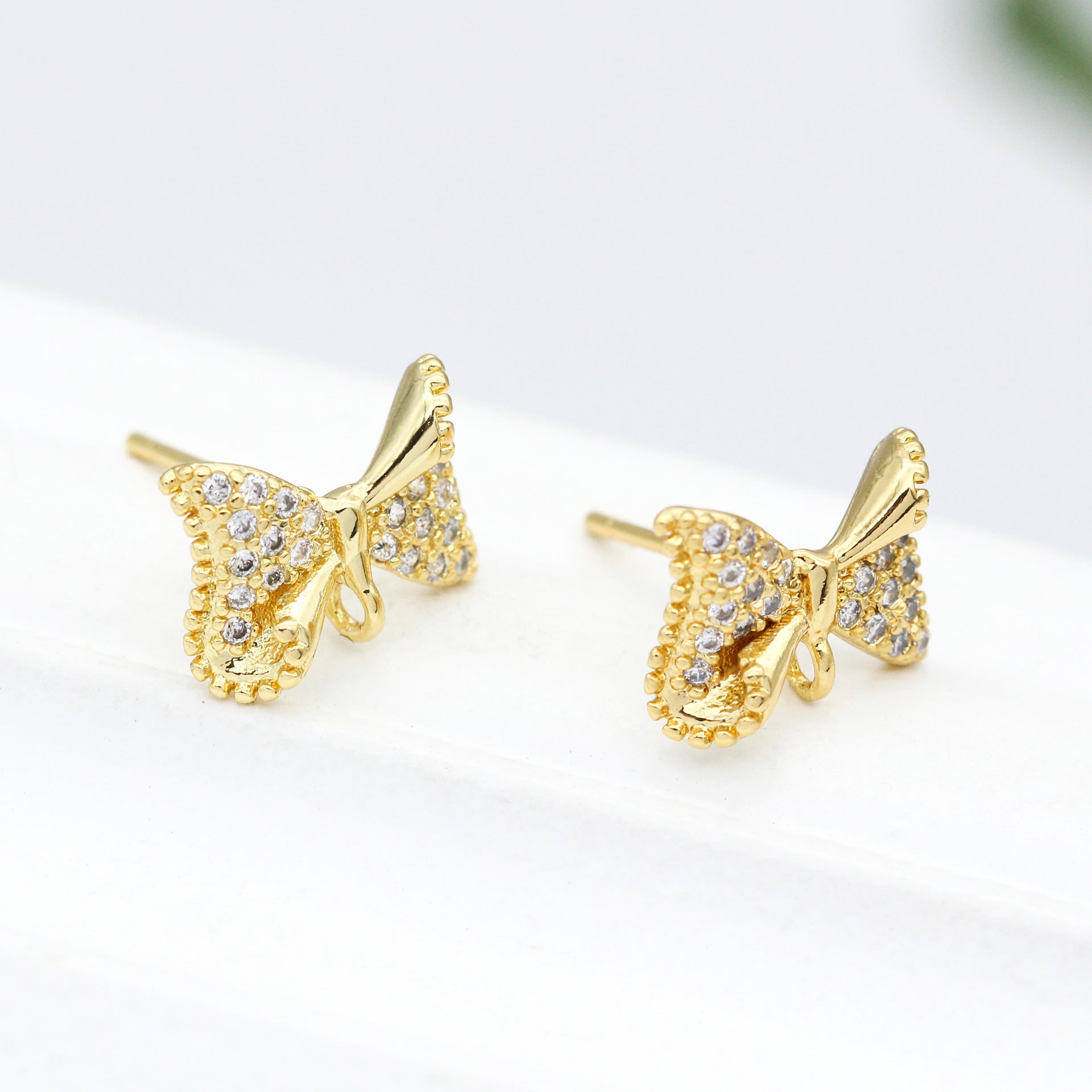 10 Ohrstecker mit Schleife und Öse, 14 Karat GF-Strassverzierung