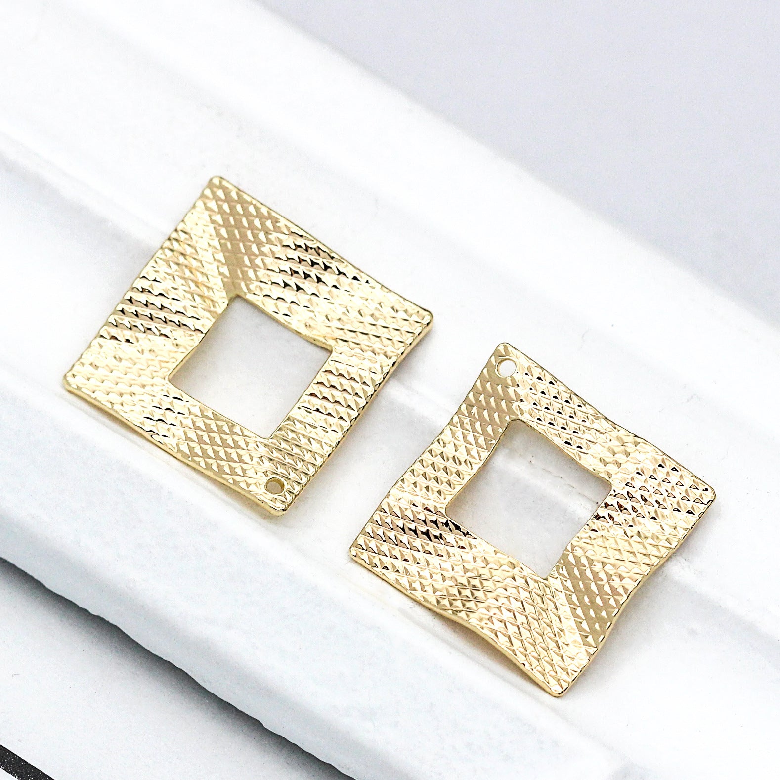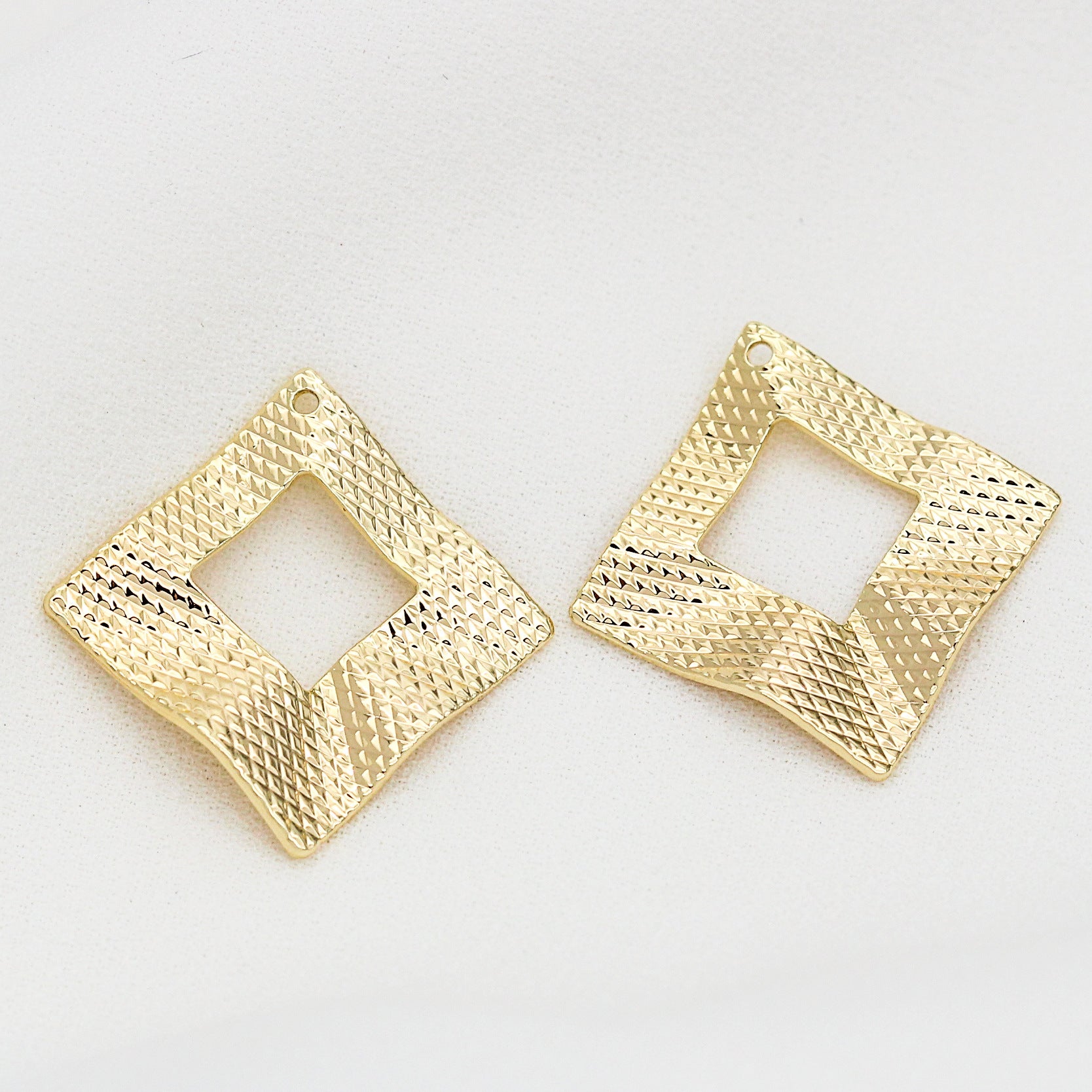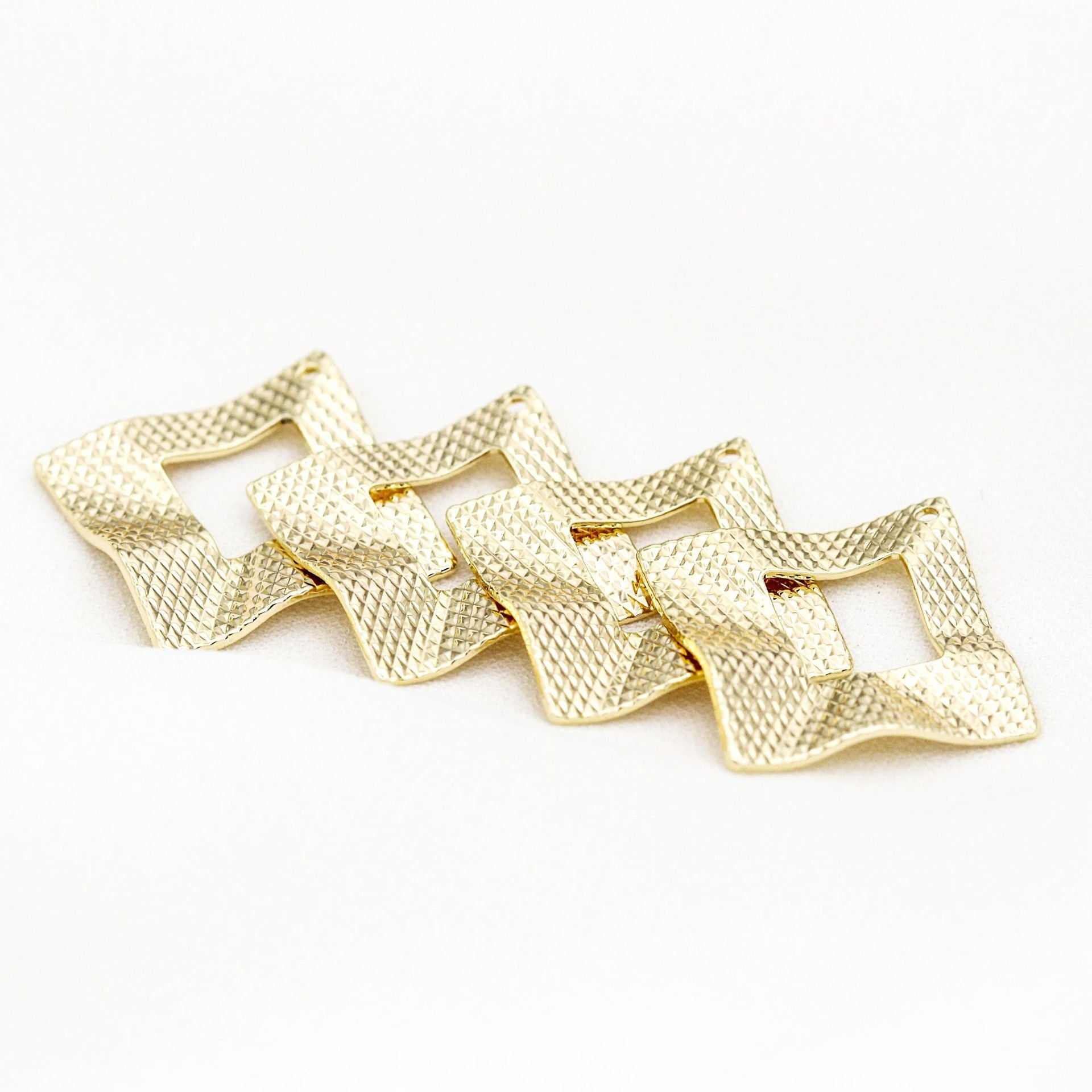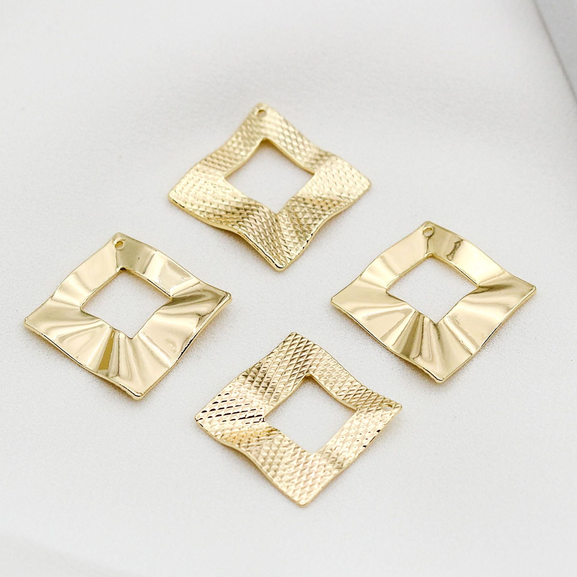10 gebogene geschnitzte quadratische Kreis-Charm-Anhänger aus 14 Karat GF