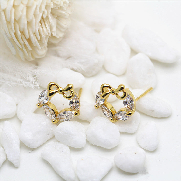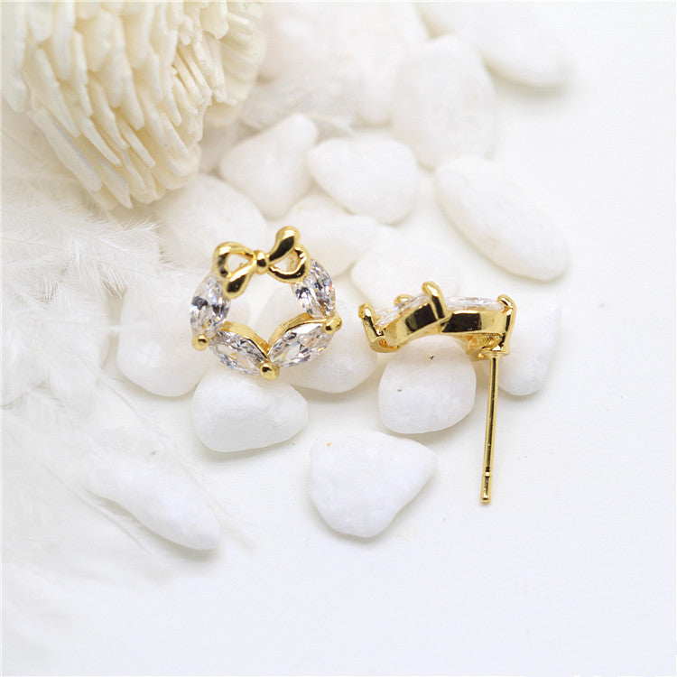 10 Ohrstecker mit Schleife, Kreis, 14 Karat GF, mit Strasssteinen verziert