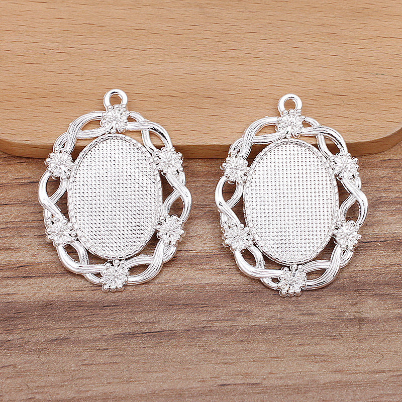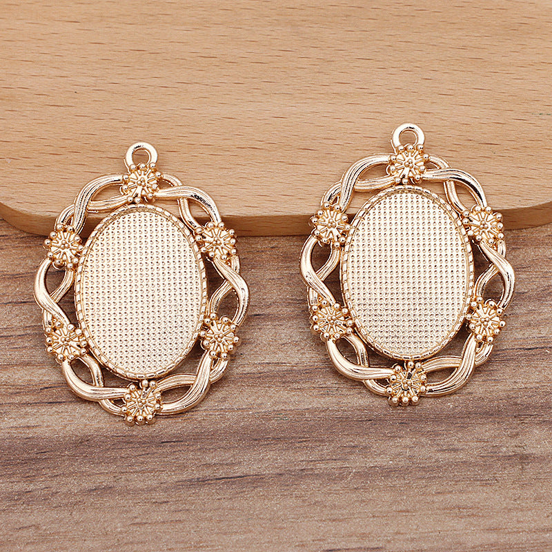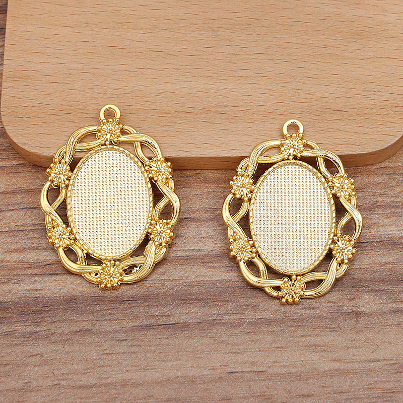 30 ovale Charm-Anhänger, 18 kgp, 18 x 25 mm, Cabochon, leere Basis, Edelsteinfassung