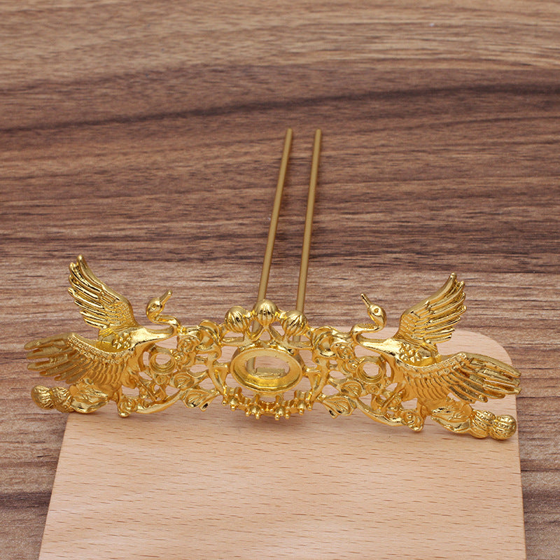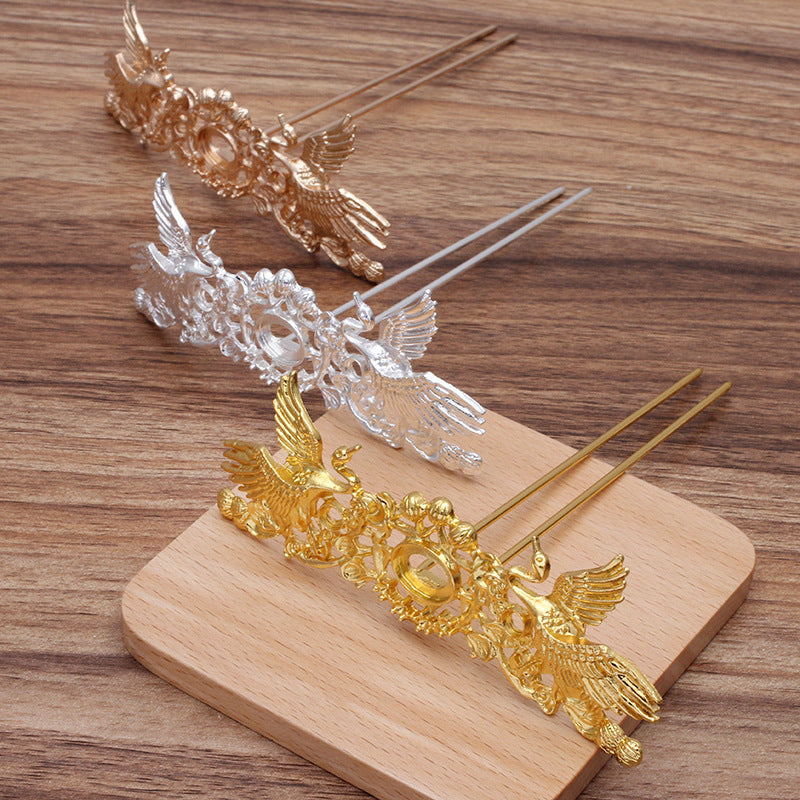5 Phoenix Floral Charm Haargabel Haarnadel 18KGP 5mm 10x15mm Rund Oval Cabochon Blanko Basis Edelstein Stück Fassung