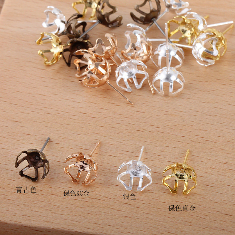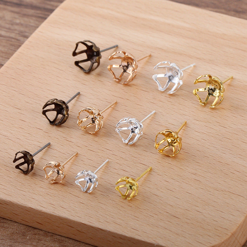 200 filigrane Blumen-Ohrstecker, 18 kg, 6 mm, 8 mm, 10 mm, runde, porenfreie Perlen-Rohlingsbasis, Edelsteinfassung