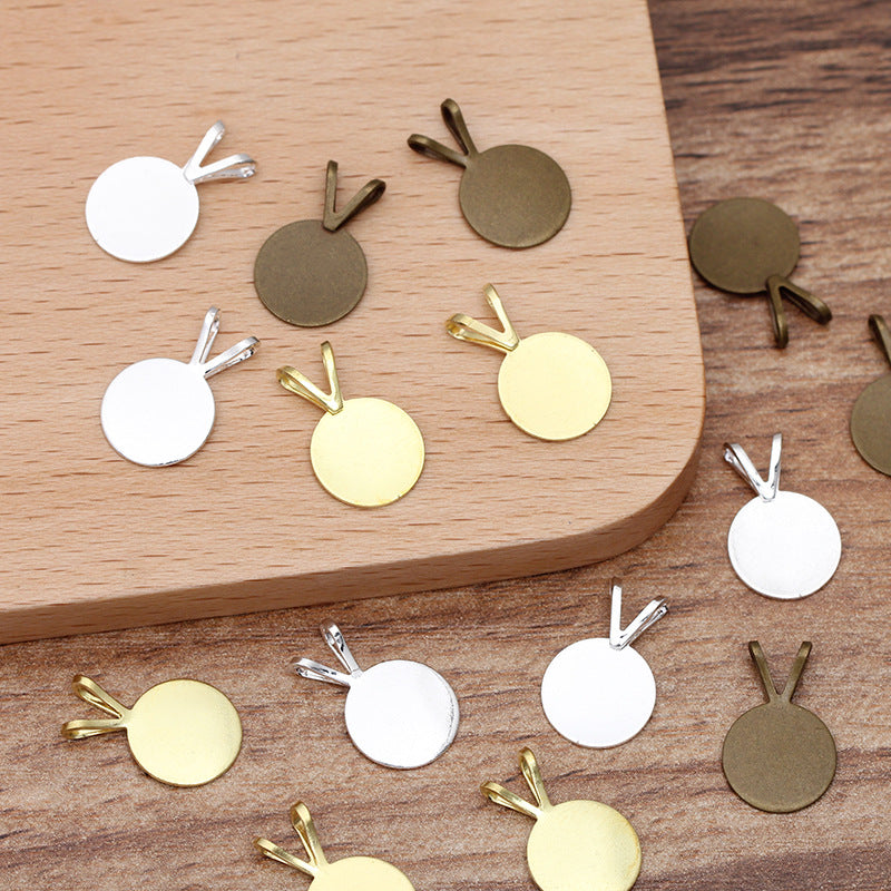 100 flache Pad-Charm-Anhänger, 18 kg, 10 mm, runder Cabochon, leere Basis, Edelsteinfassung