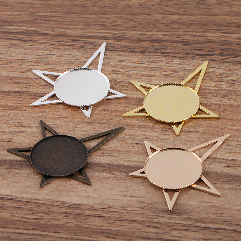 50 gezackter Rand, Lünette, Stern-Charm-Anhänger, 18 kg, 25 mm, runder Cabochon, leere Basis, Edelsteinfassung