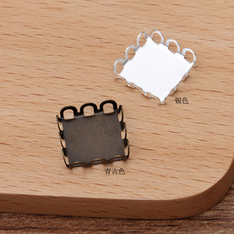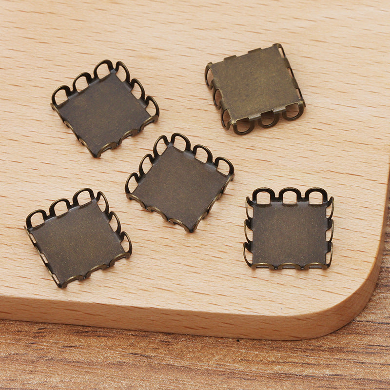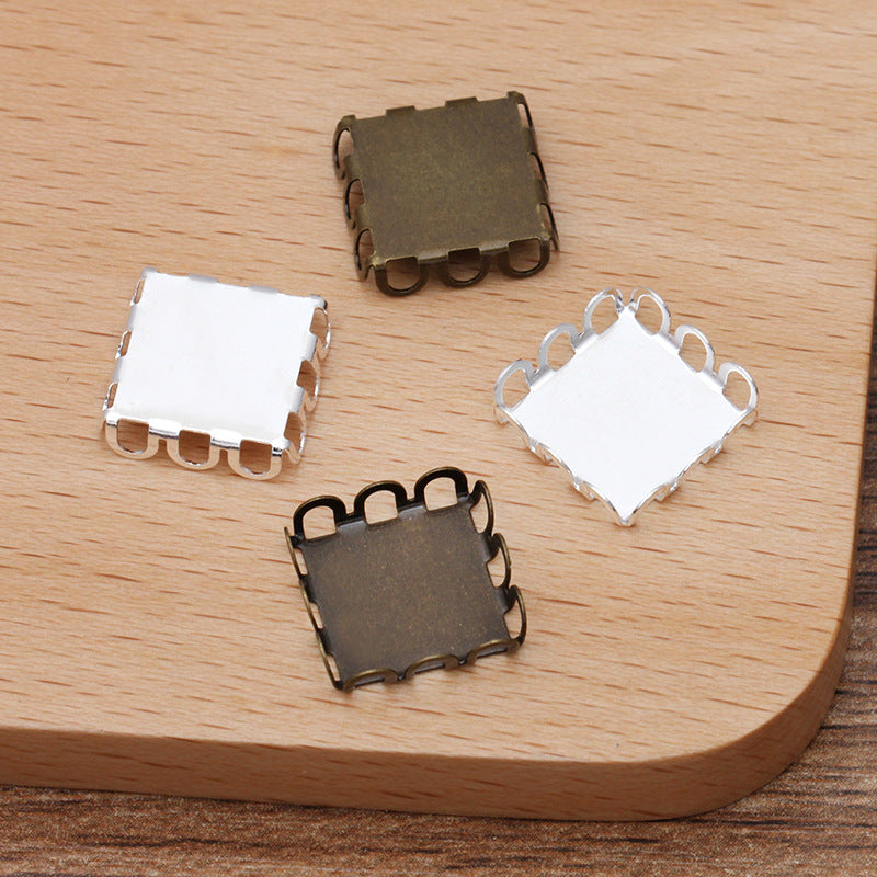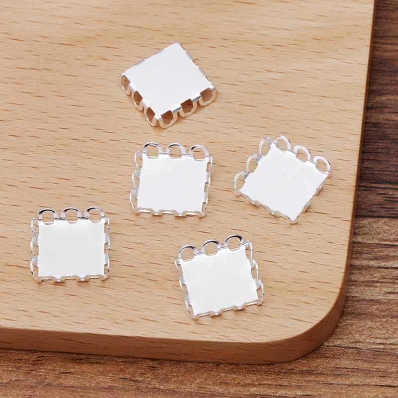 100 Muschelkanten-Anhänger mit quadratischer, flacher Rückseite, 18 kg, 12 x 12 mm, Cabochon-Strass-Zirkon-Edelstein, leere Basis