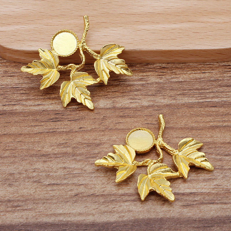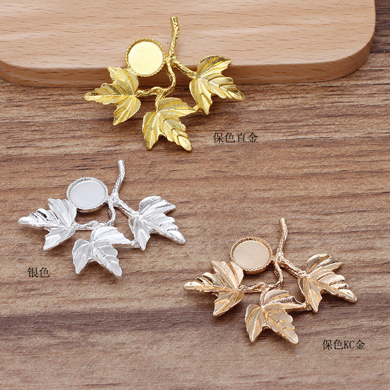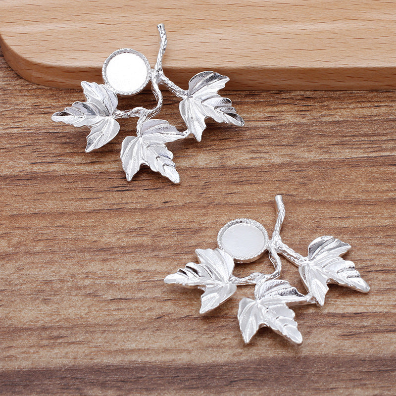 20 filigrane Blattzweige mit gezacktem Rand und Lünettenbecher-Charm, 18 kg, 8 mm, runder Cabochon, blanke Basis, Edelsteinfassung