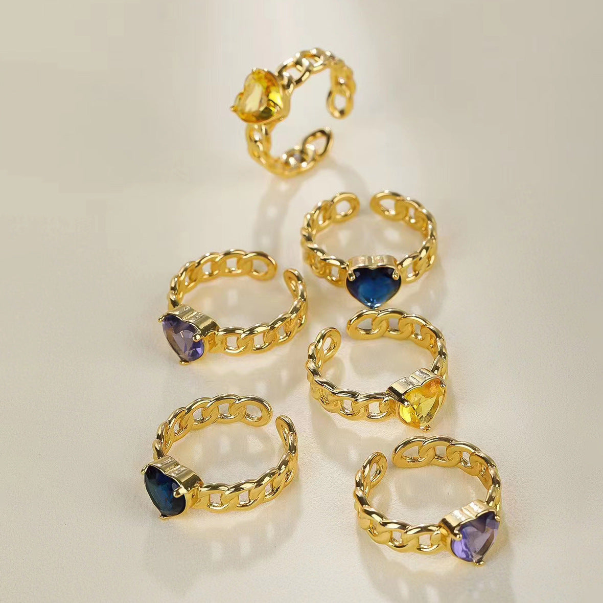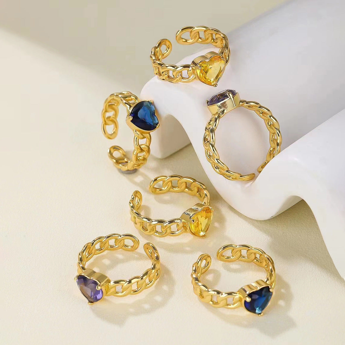 2 Statement-Ringe mit offener Kreis-Kabelkette und 14-karätigem GF mit Strasssteinen