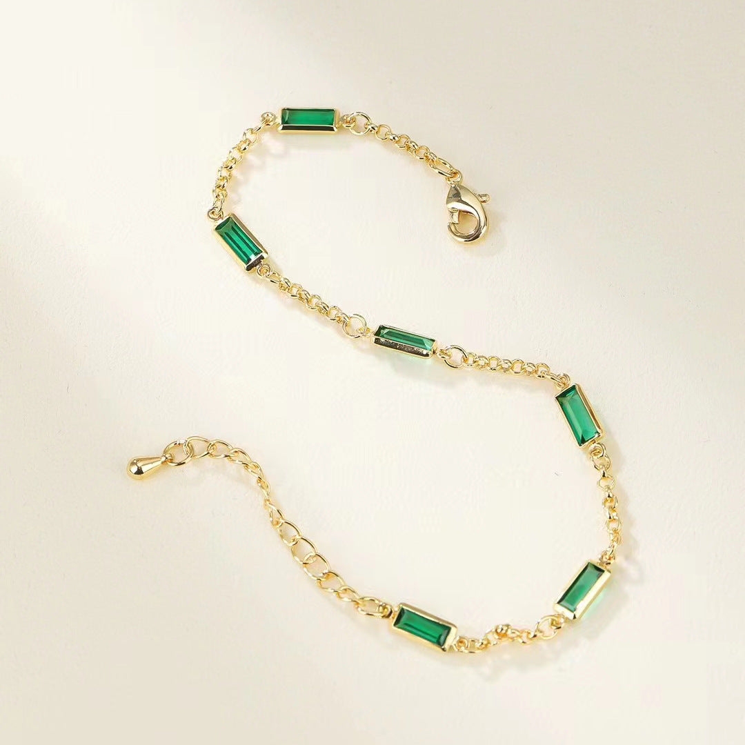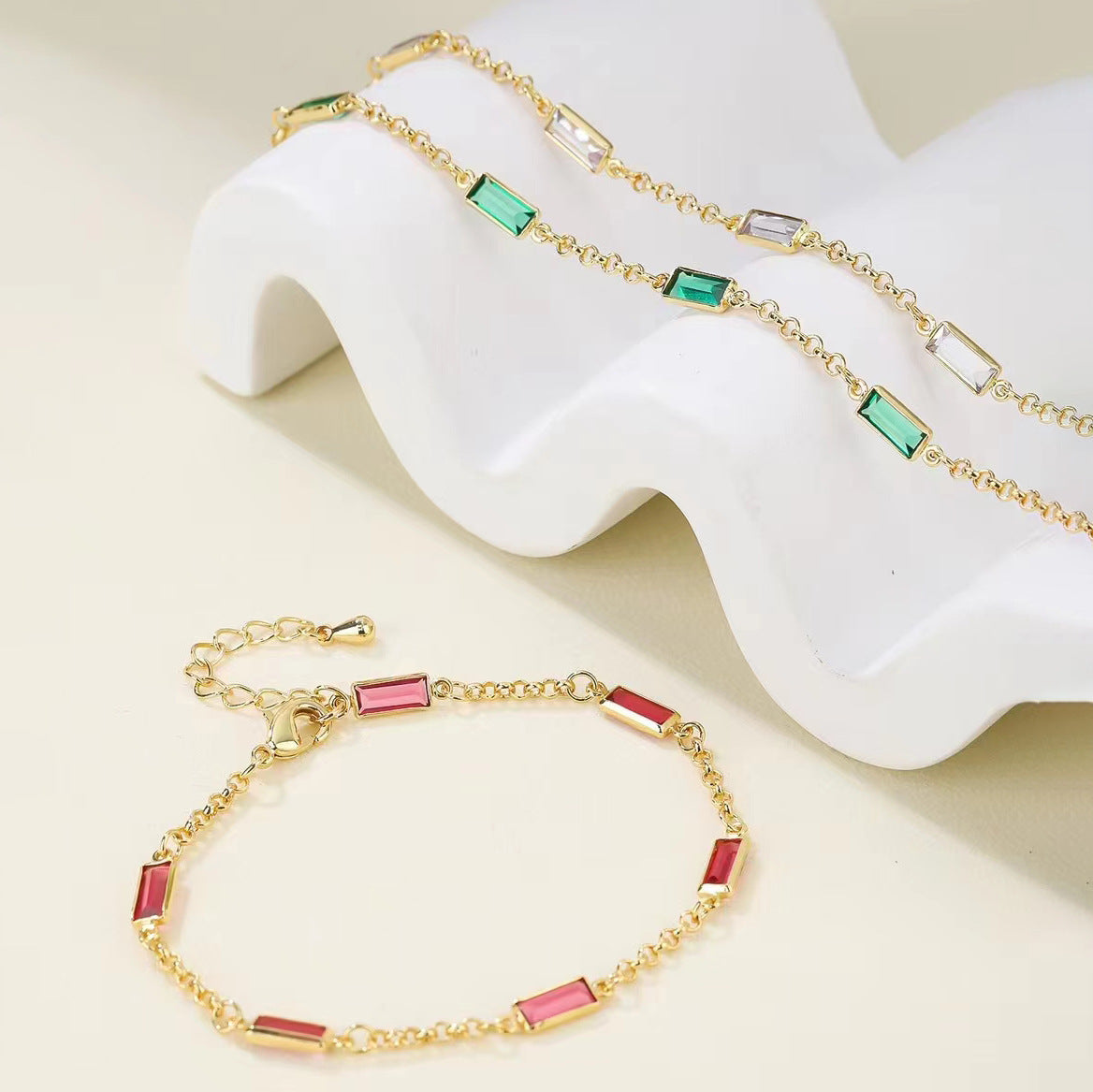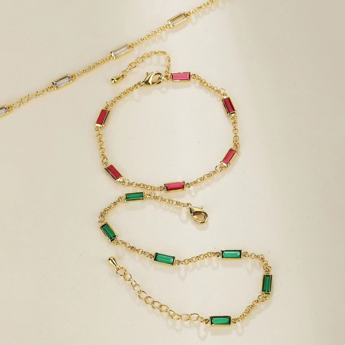 2 dünne Kabelketten-Armbänder mit Strasssteinen verzierter 14-karätiger GF-Armreif