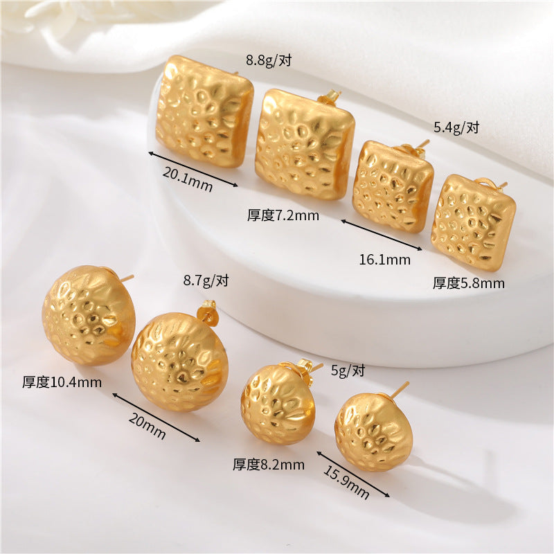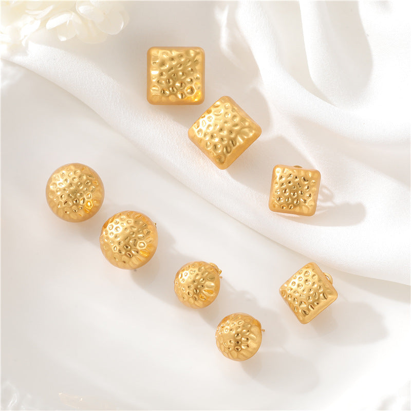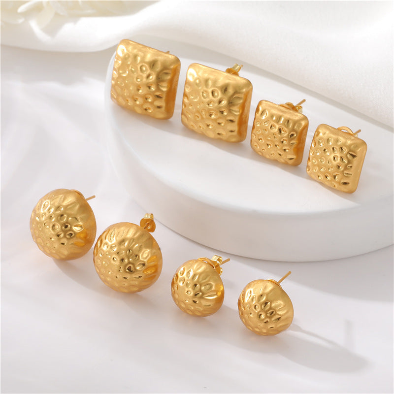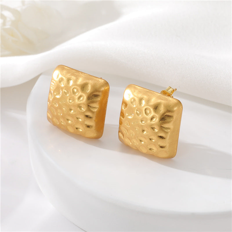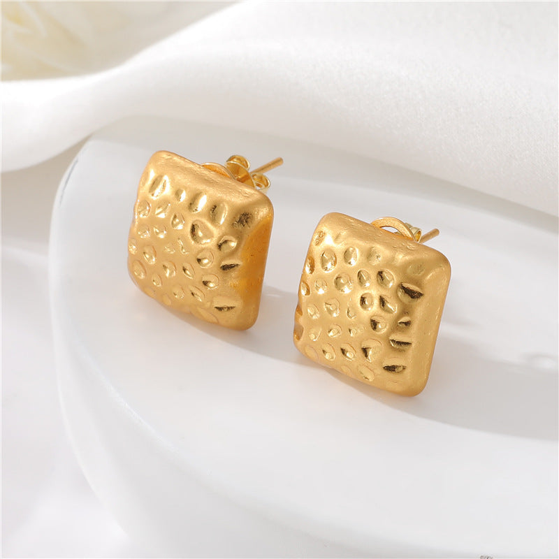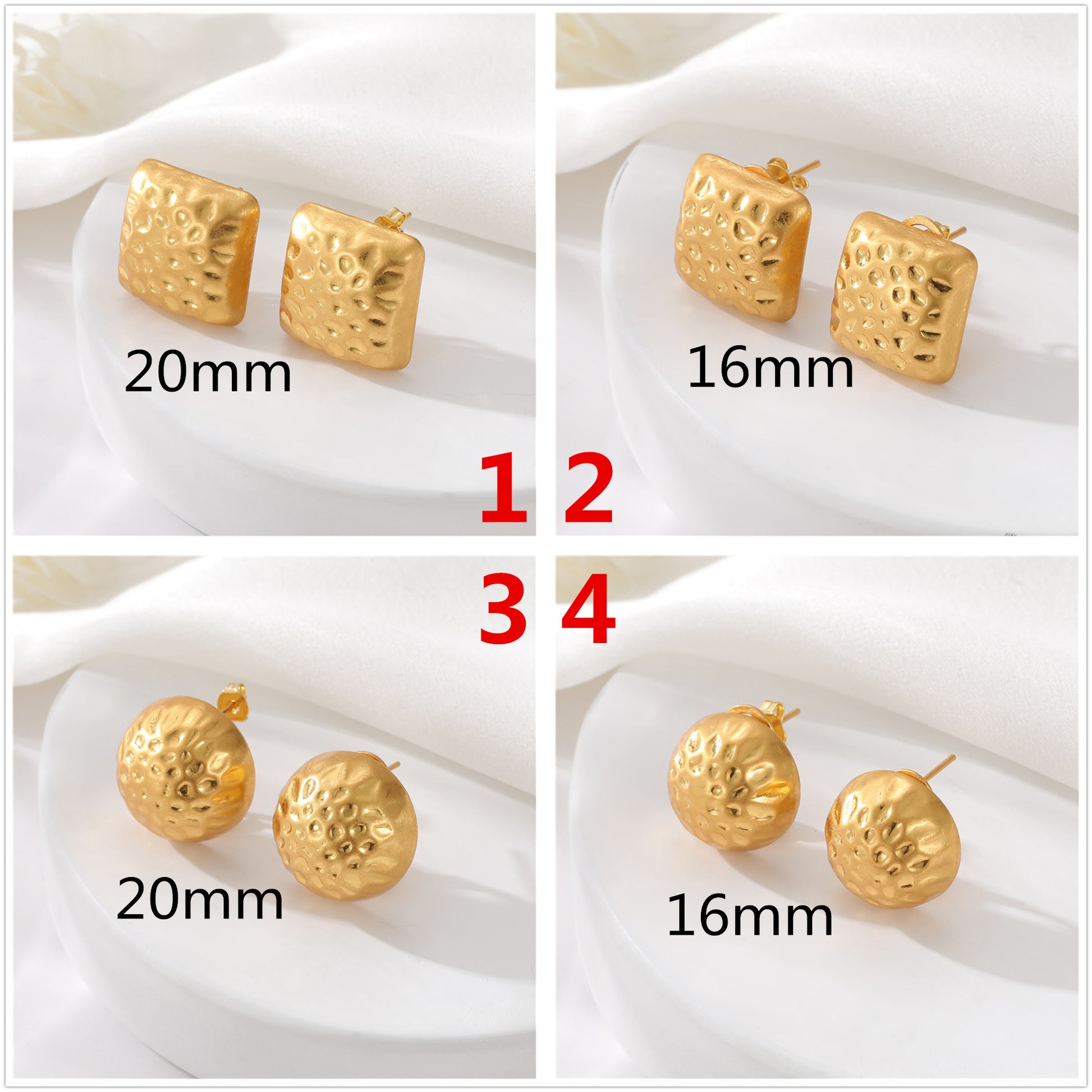 4 gehämmerte quadratische runde Ohrstecker aus 14-karätigem GF