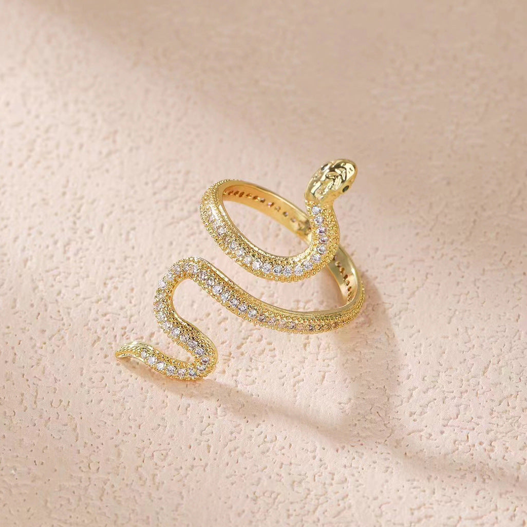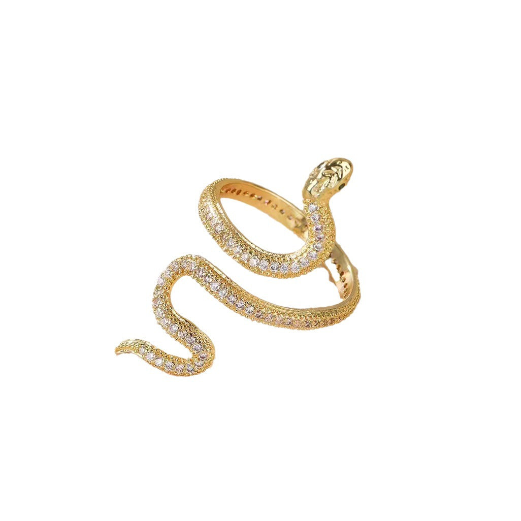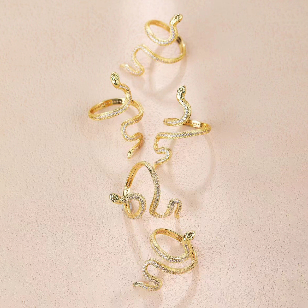 2 Schlangen-Statement-Ringe mit offenem Kreis und 14-karätigem GF mit Strasssteinen verziert