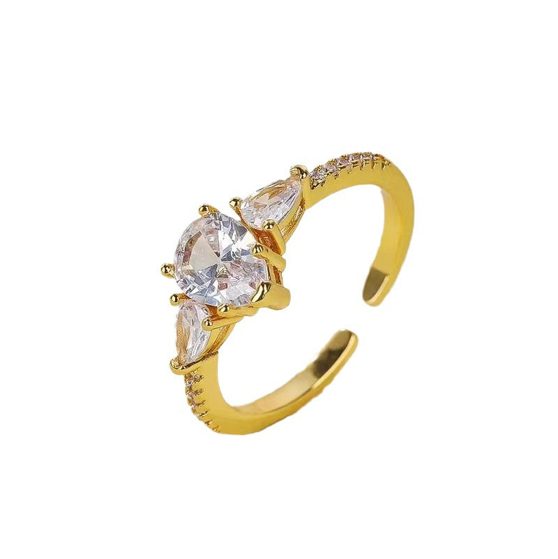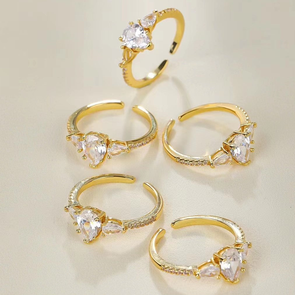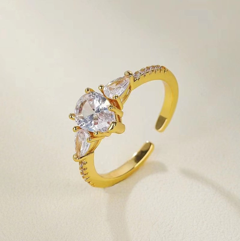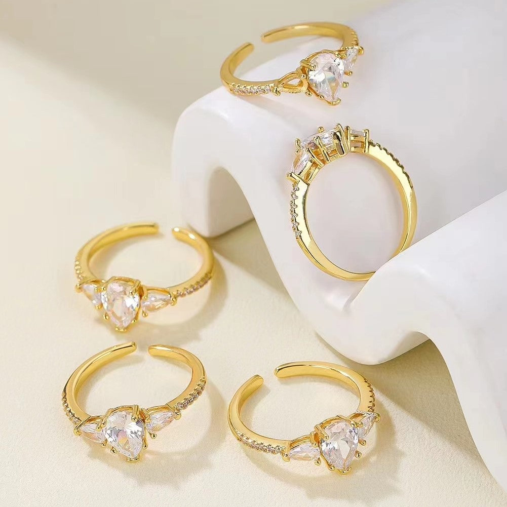 2 offene Kreis-Wassertropfen-Statement-Ringe mit Strasssteinen verziert, 14-karätiges GF