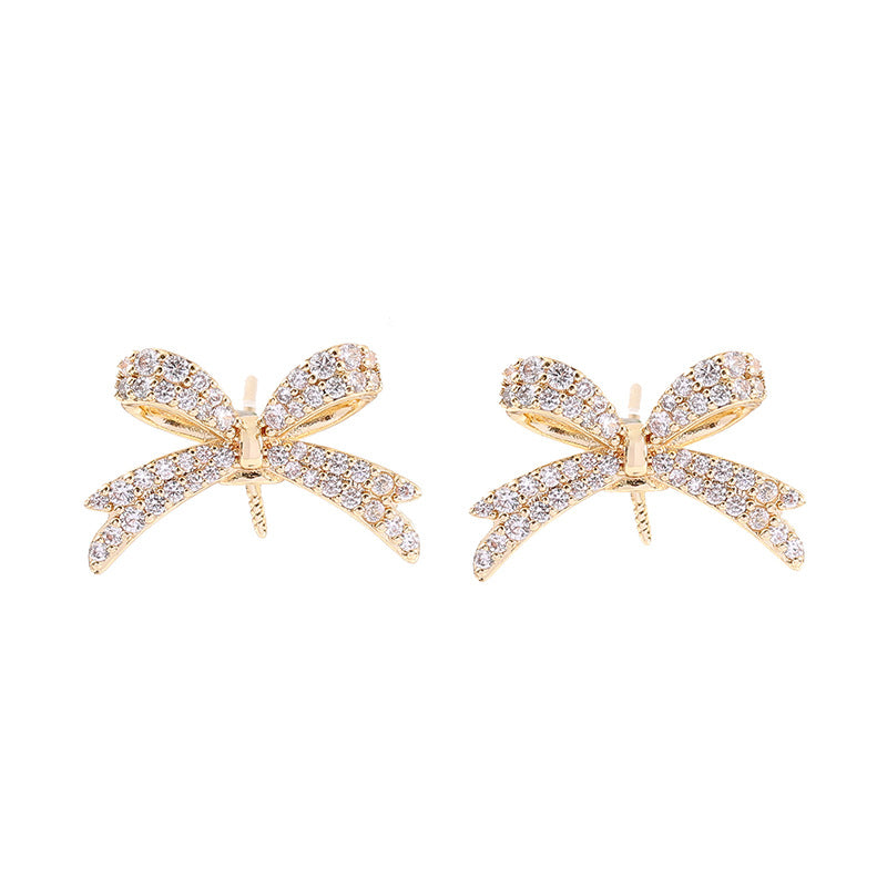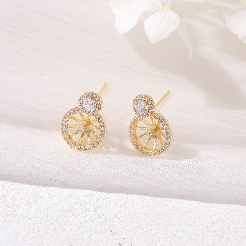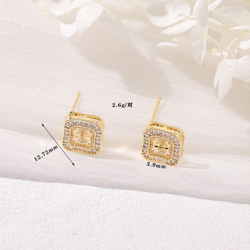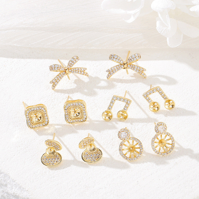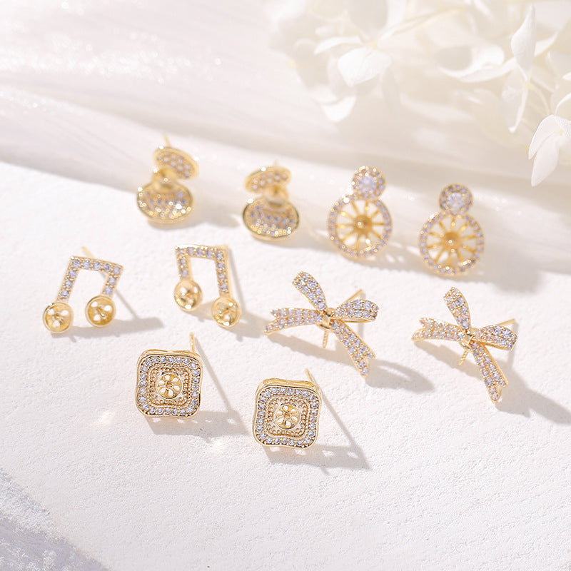 4 Ohrstecker mit floraler Schleife, quadratisch, mit Musik, Strassverzierung, 14K GF-Ohrring, halbgebohrte Perle, Rohling