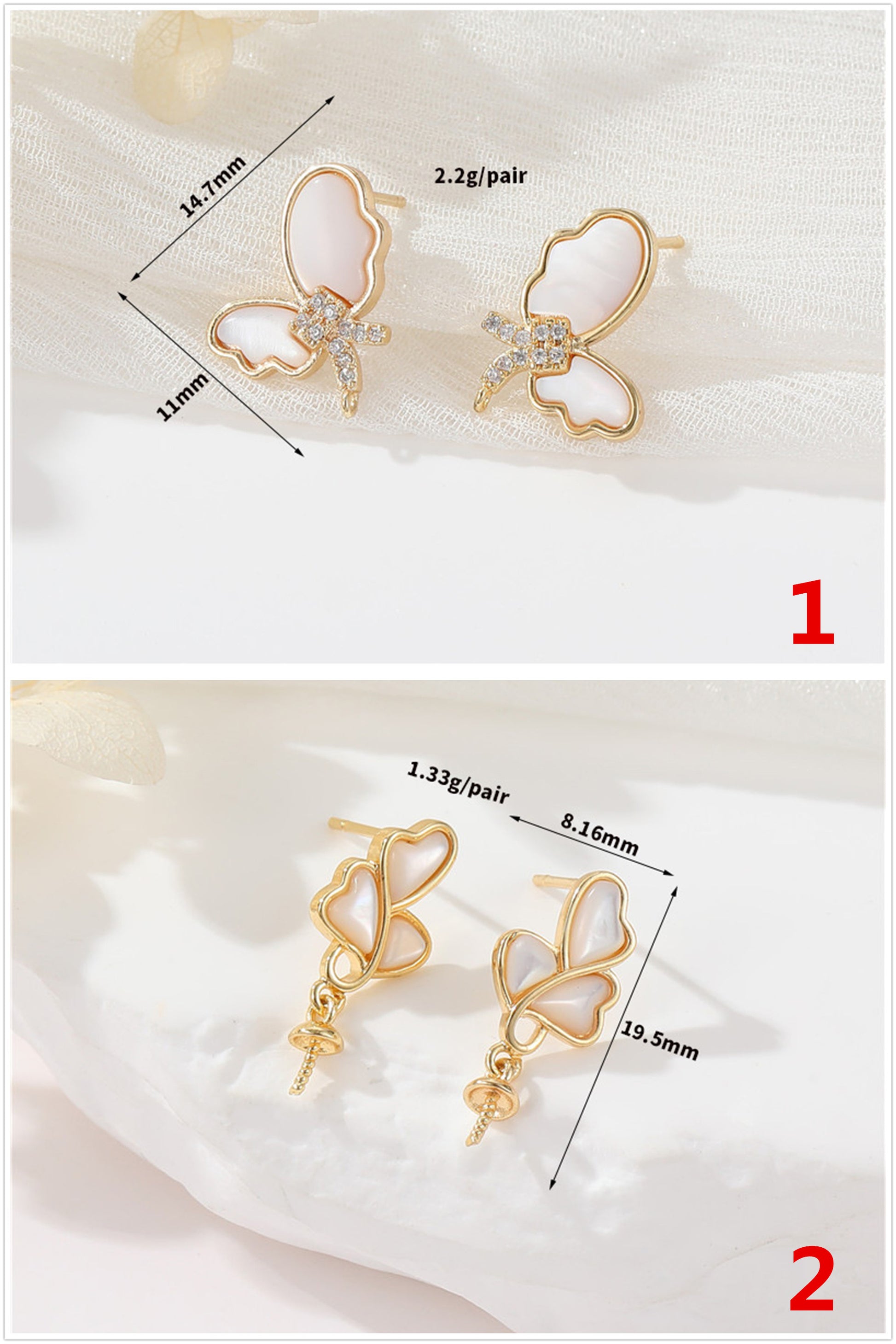 2 Schmetterlings-Charm-Anhänger, Strass-Muschel, verziert, 14 K GF, halbgebohrte Perle, Rohling
