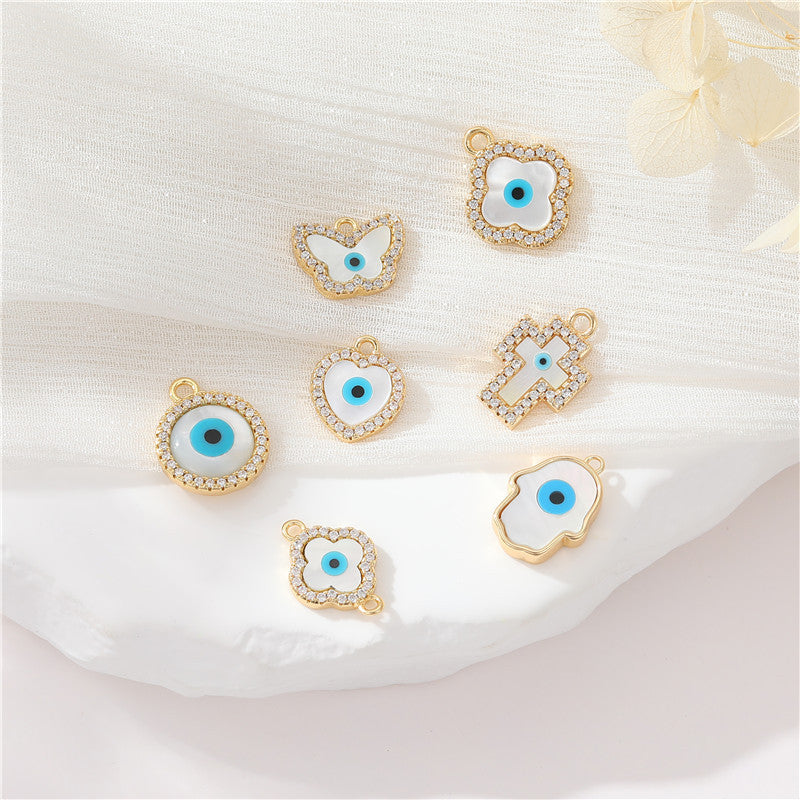 2 Kreuz Hand Rundes Auge Blumen Herz Schmetterling Charm Anhänger Harz Strass verziert 14K GF