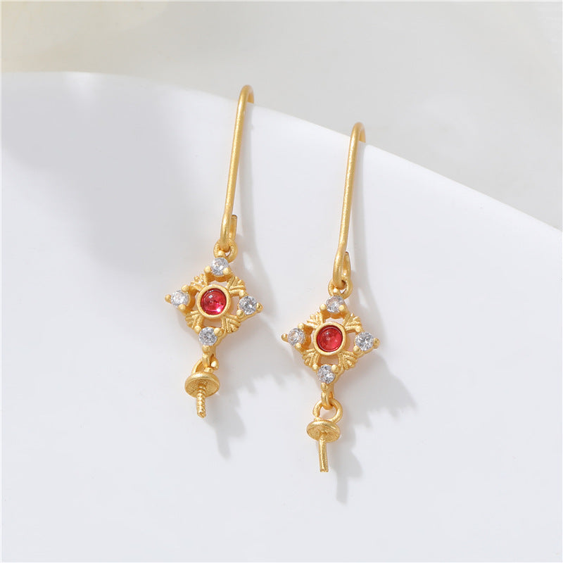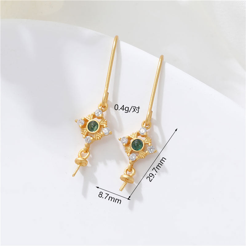4 florale Hakenohrringe mit Strassverzierung, 14K GF-Ohrring, halbgebohrte Perle, Rohling