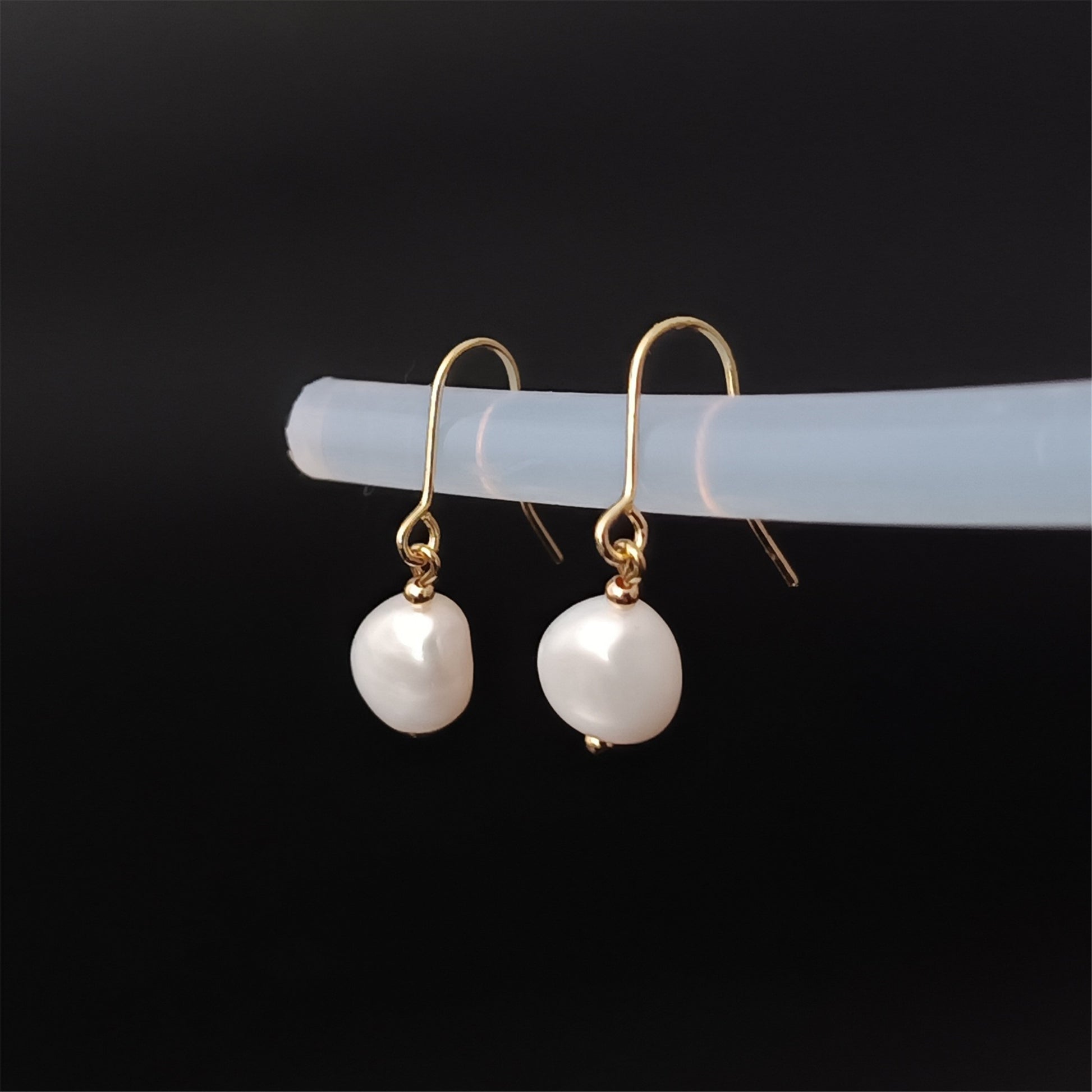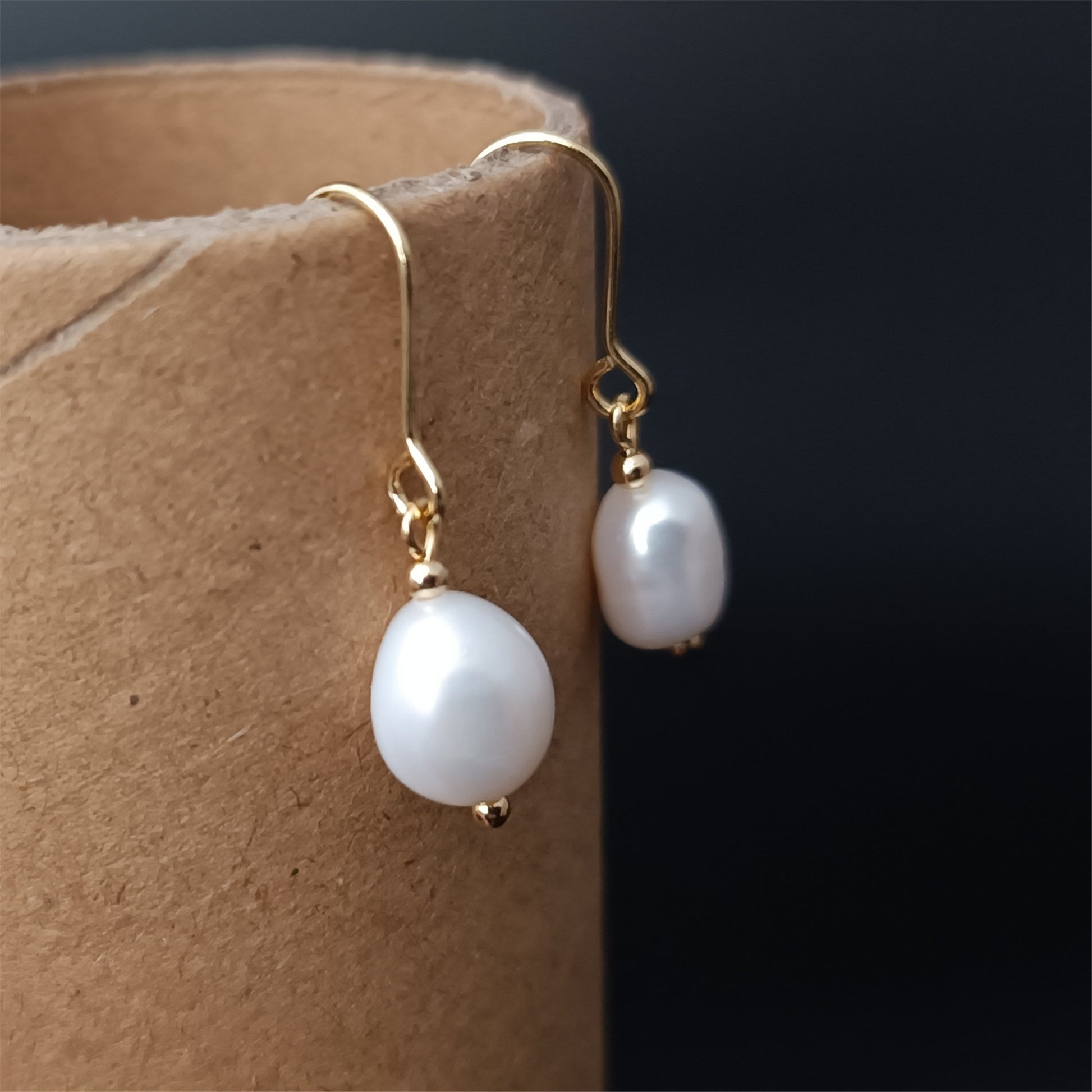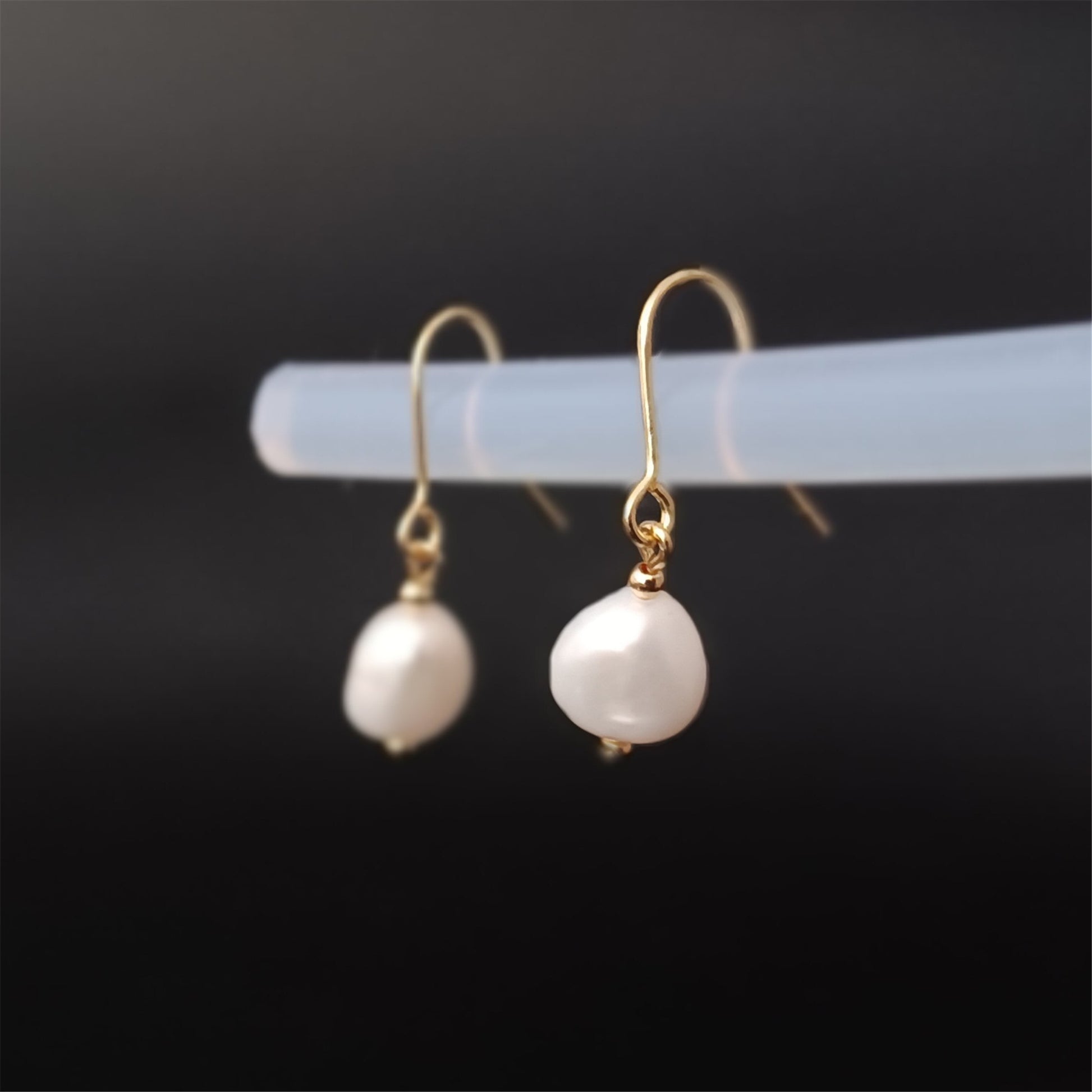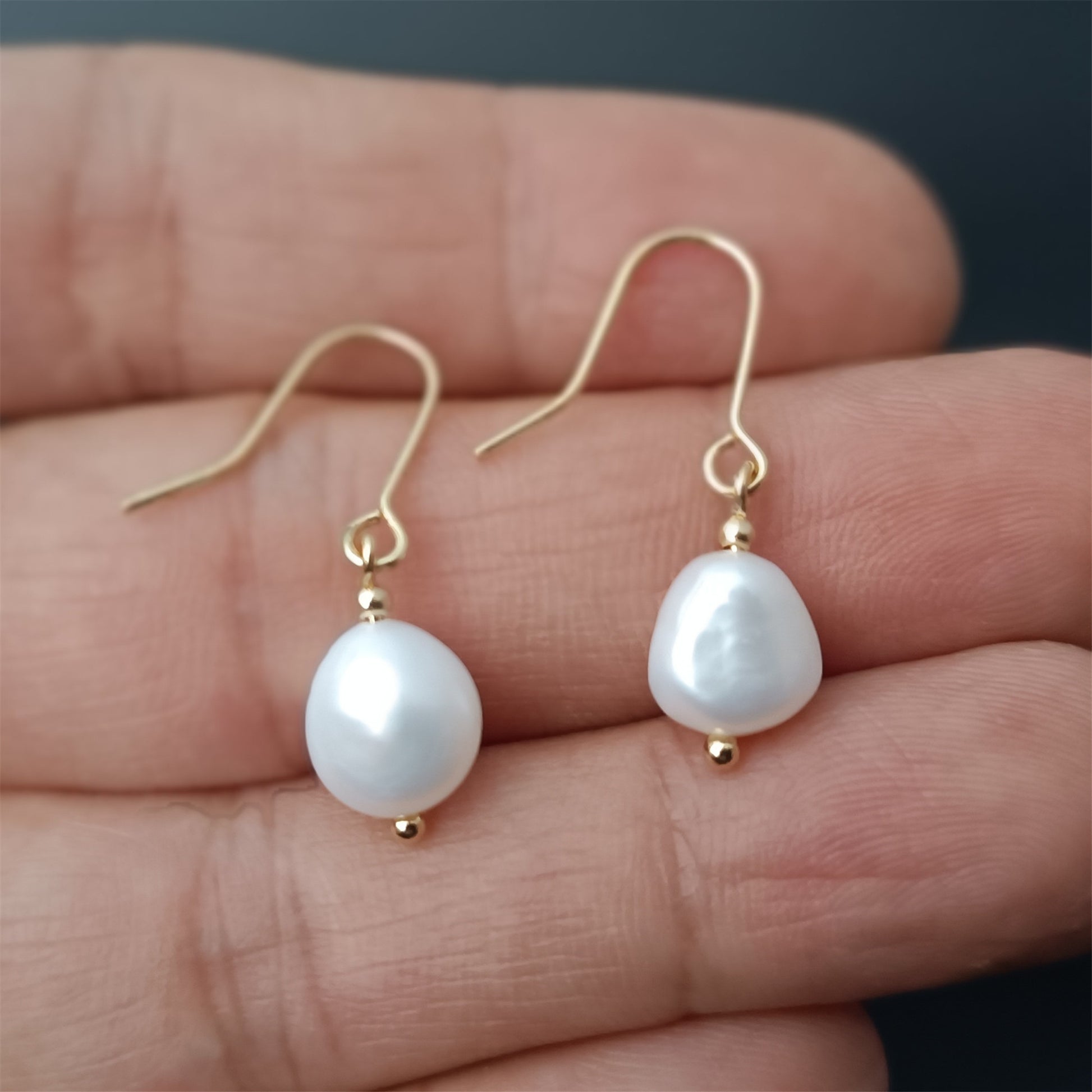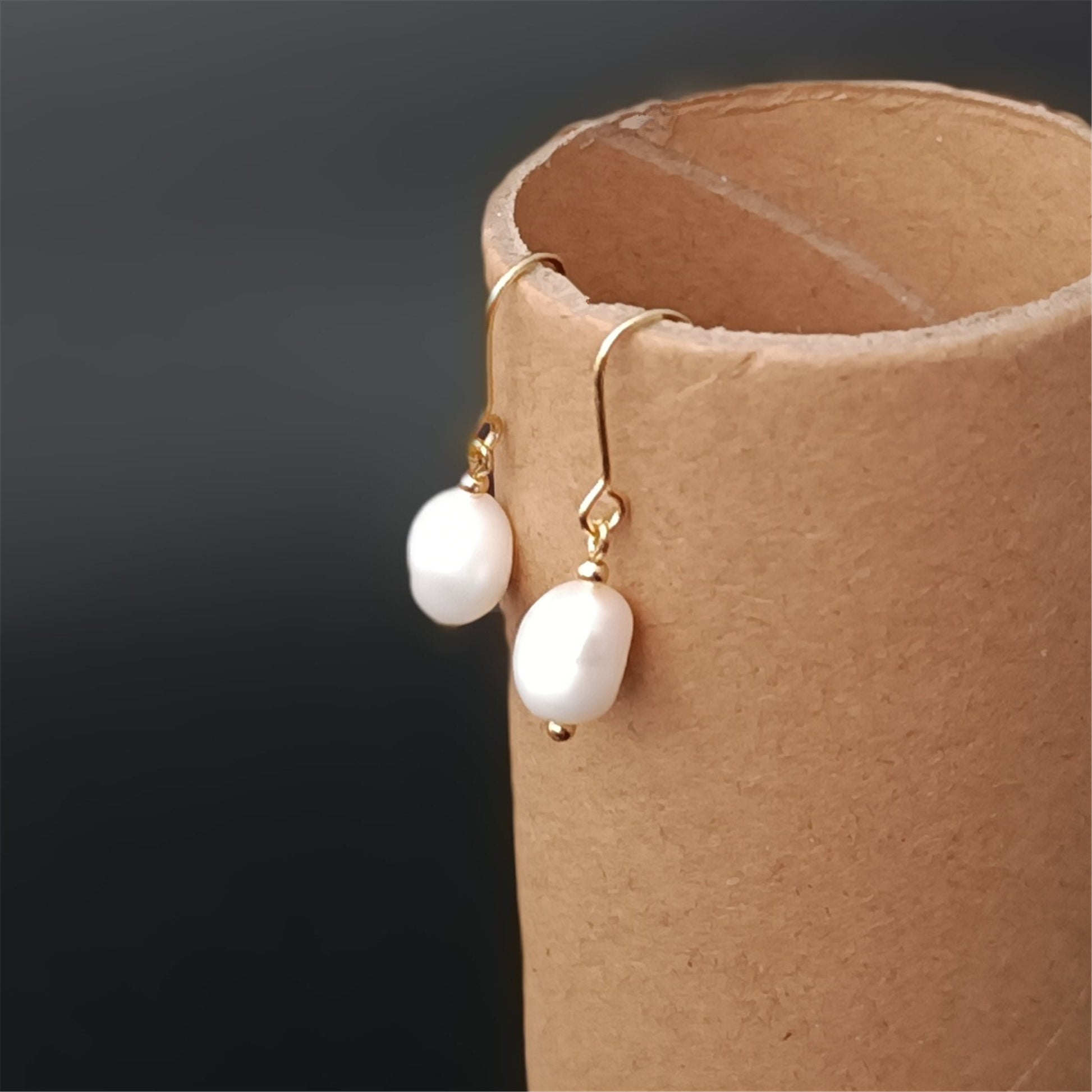 Natürliche Süßwasser-Barockperlen-Ohrringe, tägliches Tragen, 14 Karat GF, schlichte Ohrhaken-Ohrhänger