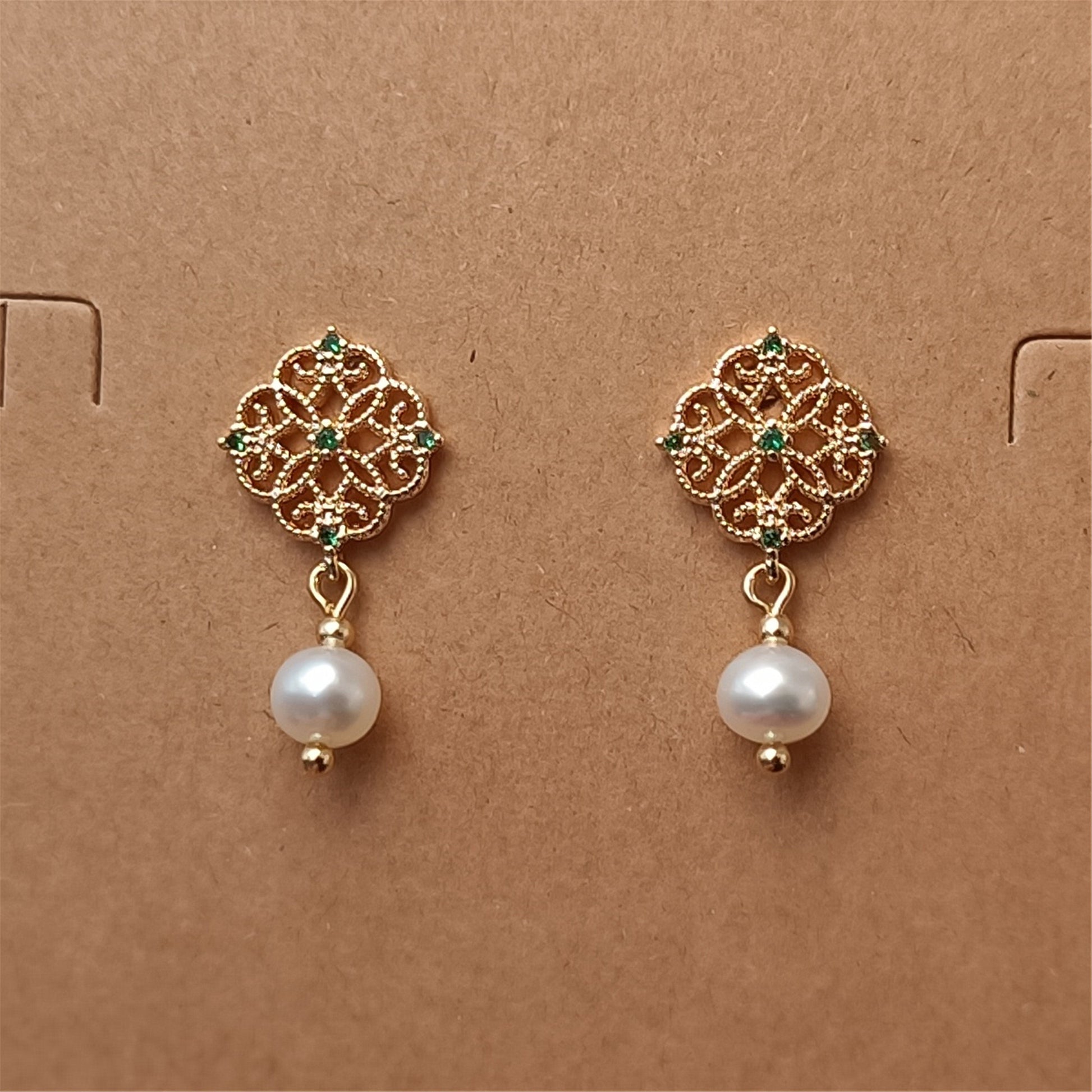 Natürliche Süßwasser-Barockperlen-Ohrringe, tägliches Tragen, 14 K GF CZ, Blumen-Ohrstecker, baumelnde Ohrringe