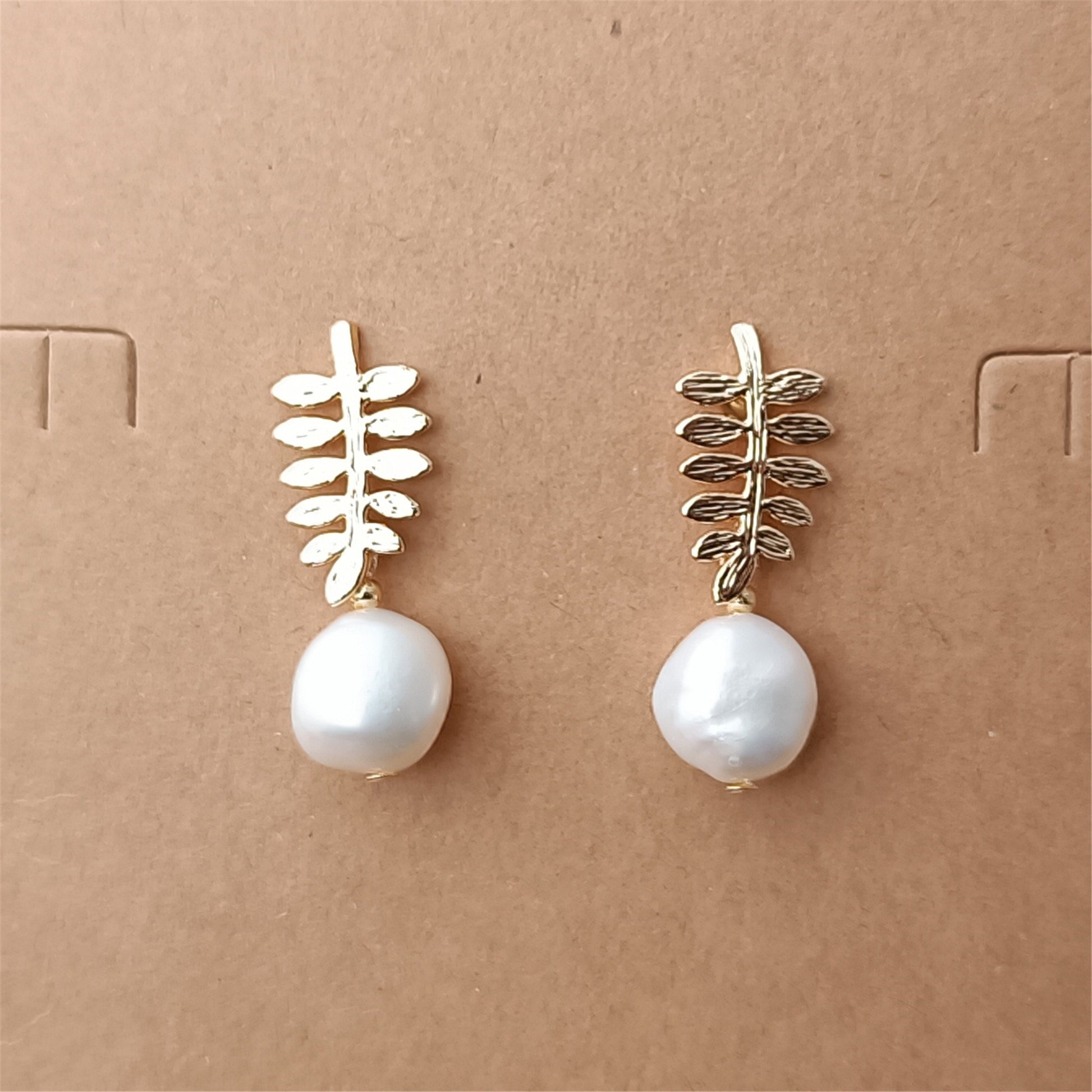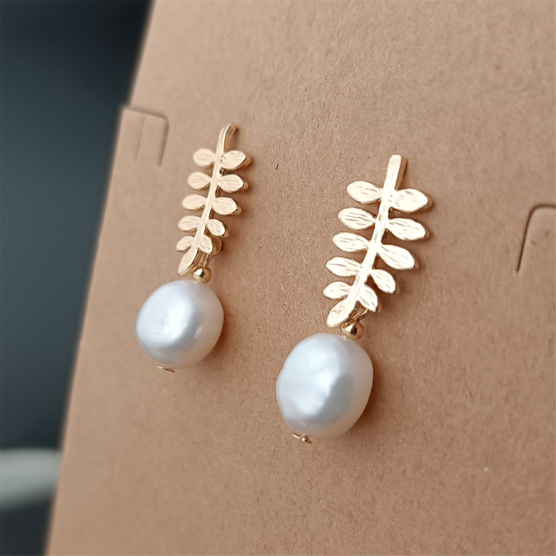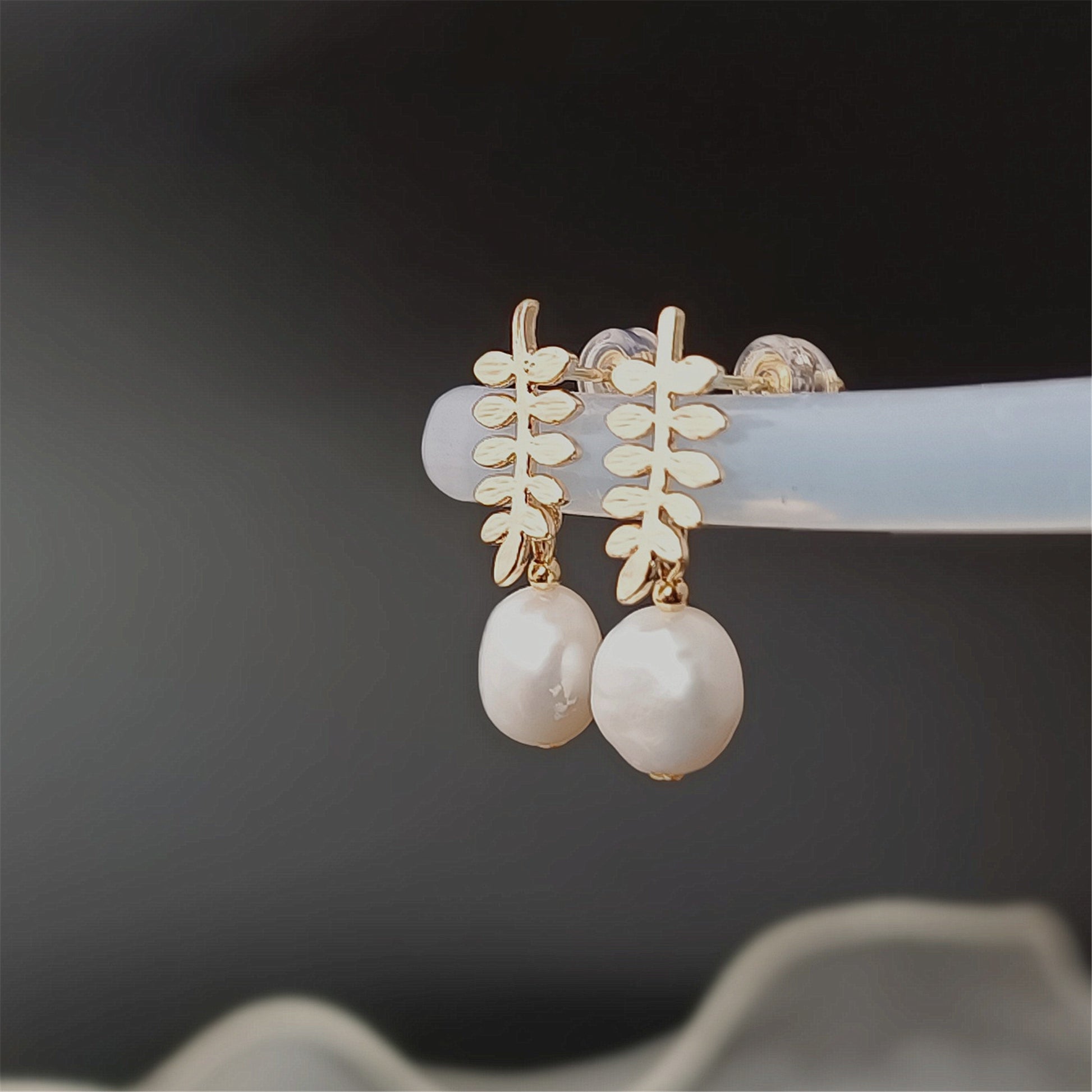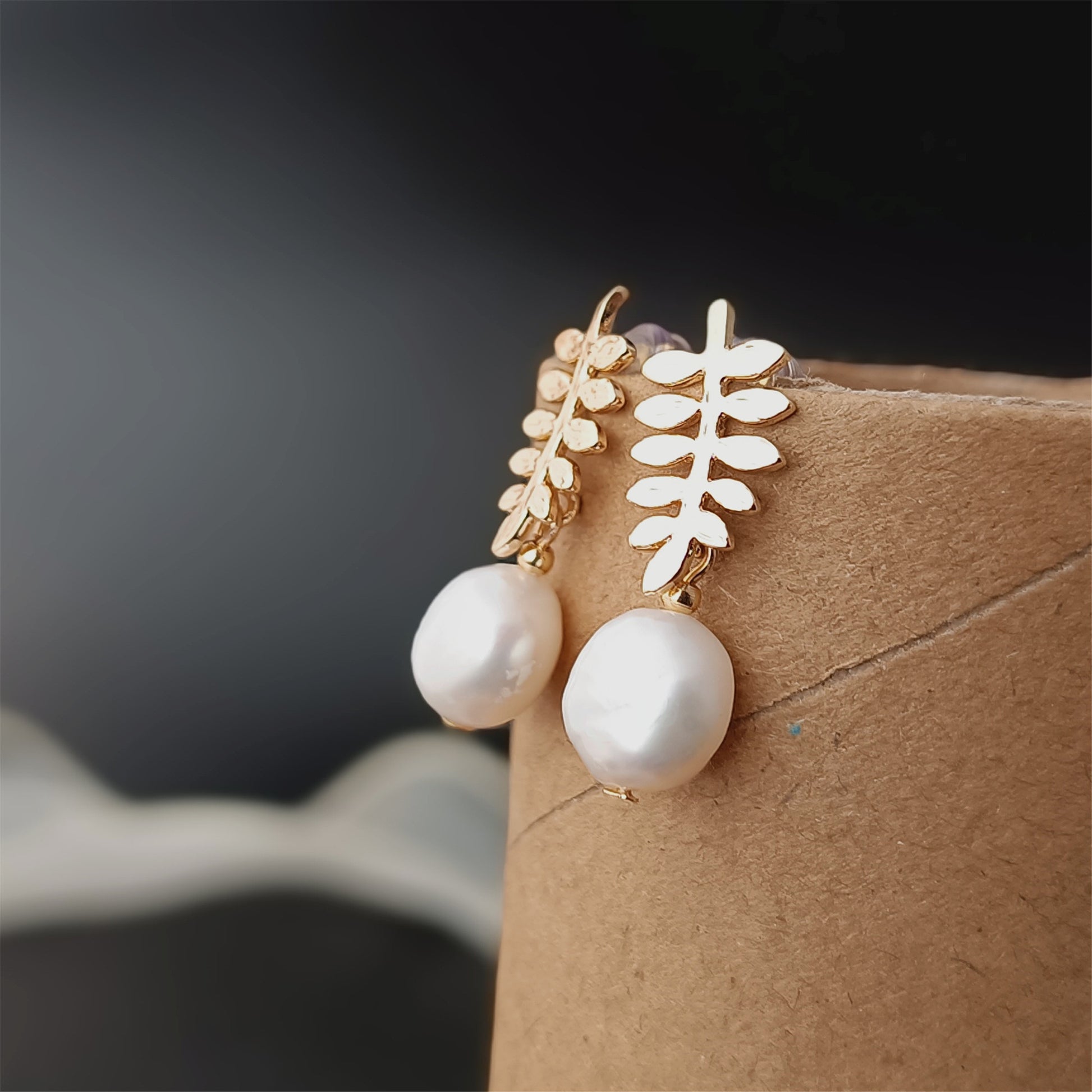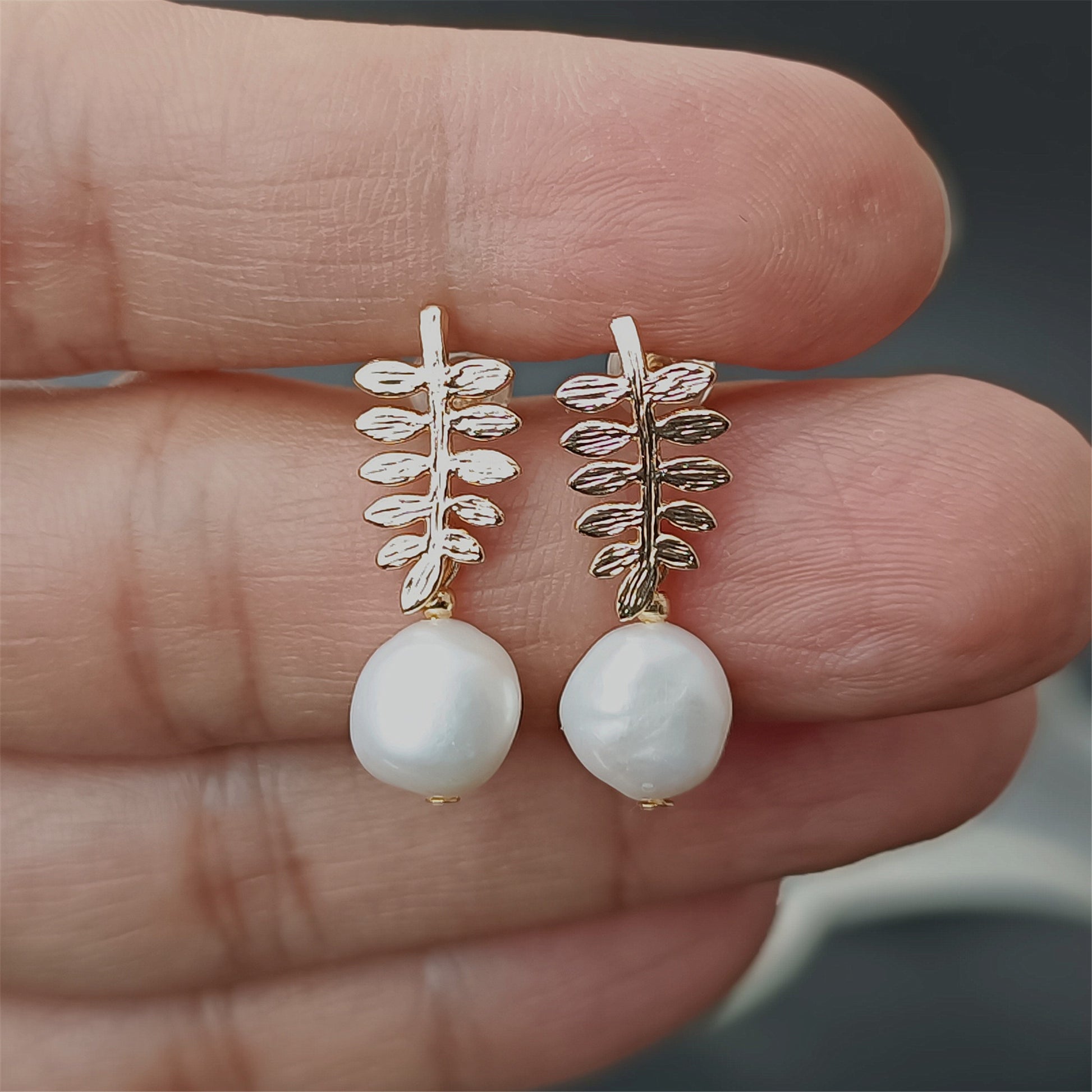 Natürliche Süßwasser-Barockperlen-Blatt-Ohrstecker, tägliches Tragen, 14-karätige GF-Ohrstecker, baumelnde Ohrringe