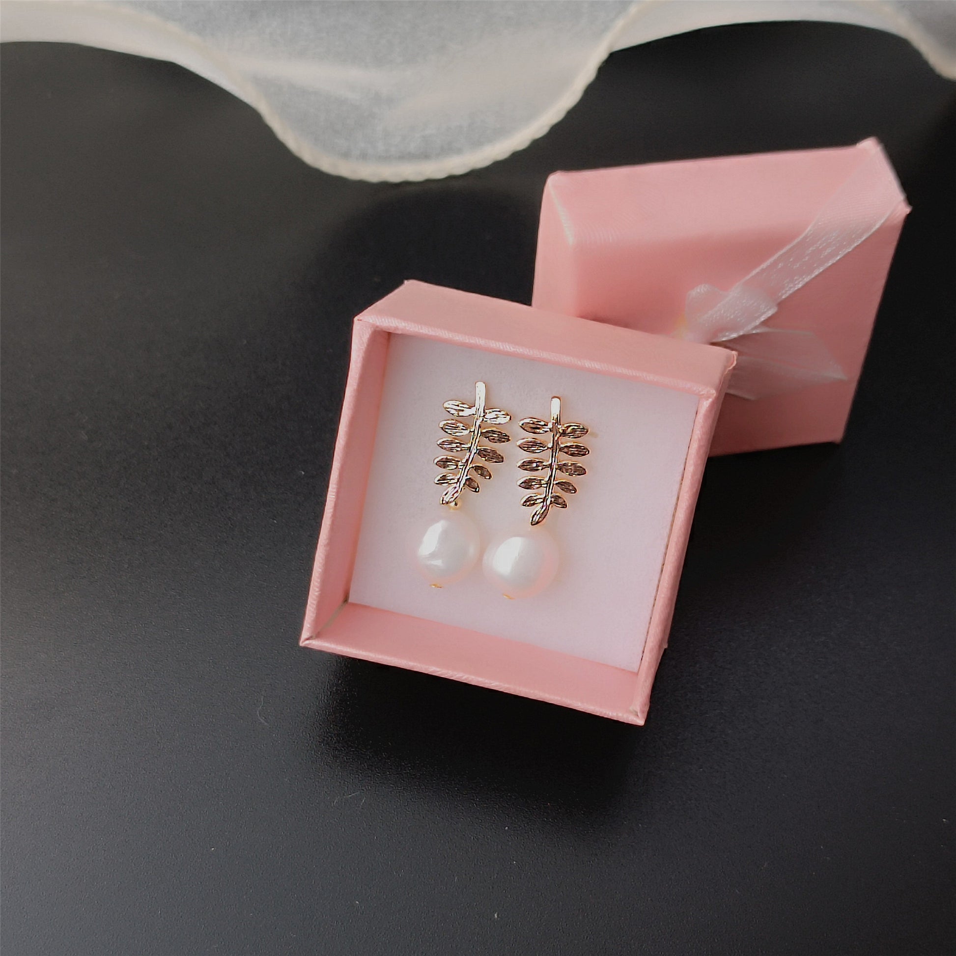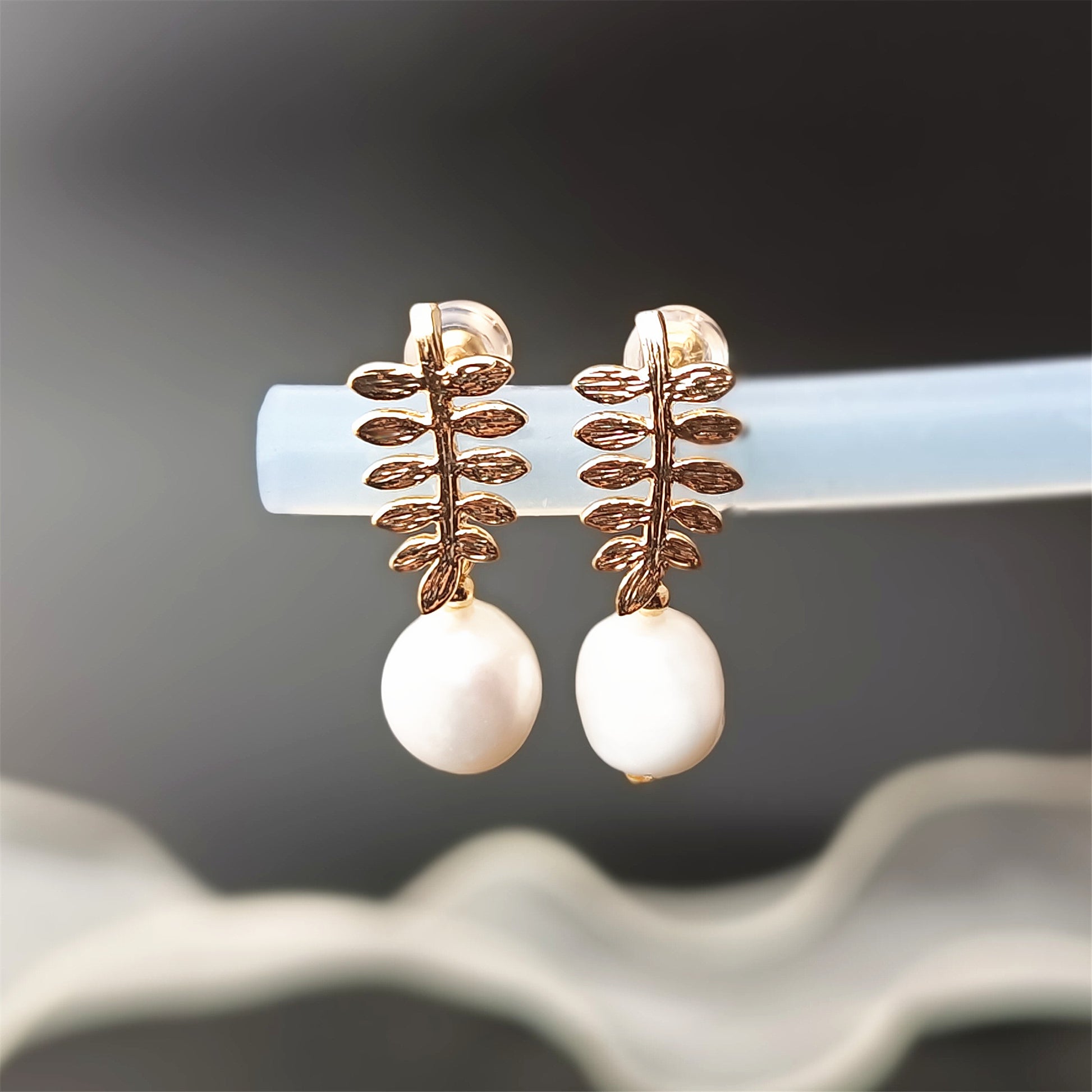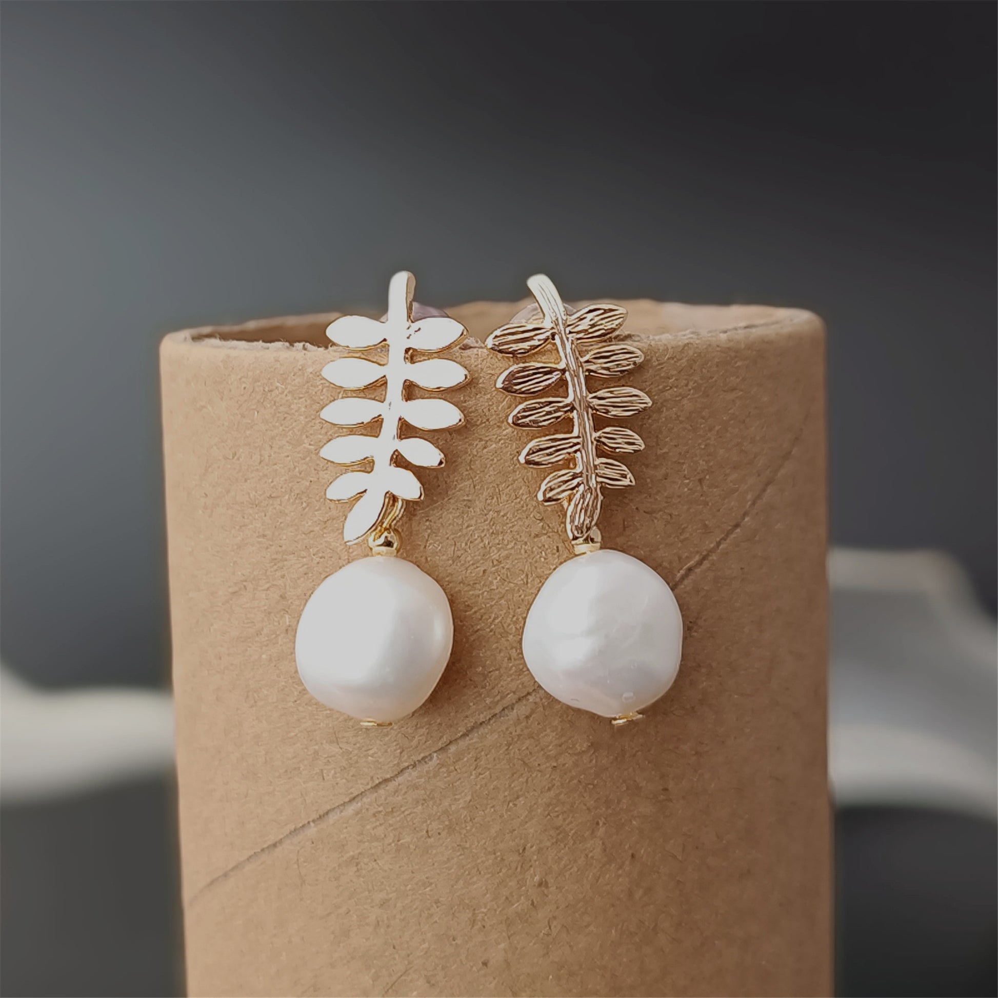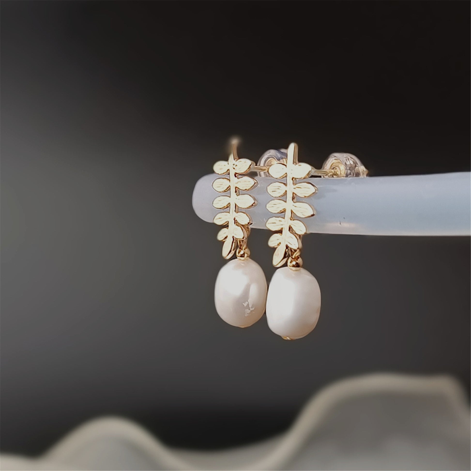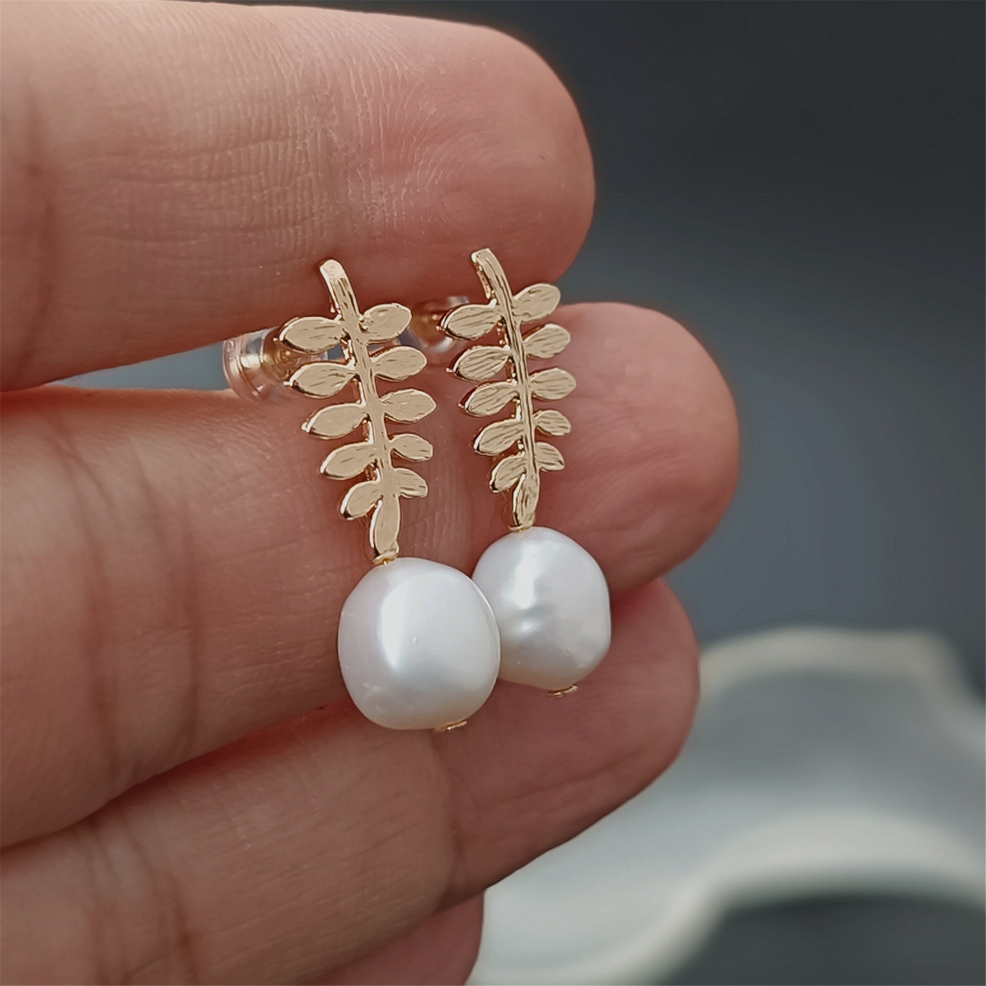 Natürliche Süßwasser-Barockperlen-Blatt-Ohrstecker, tägliches Tragen, 14-karätige GF-Ohrstecker, baumelnde Ohrringe