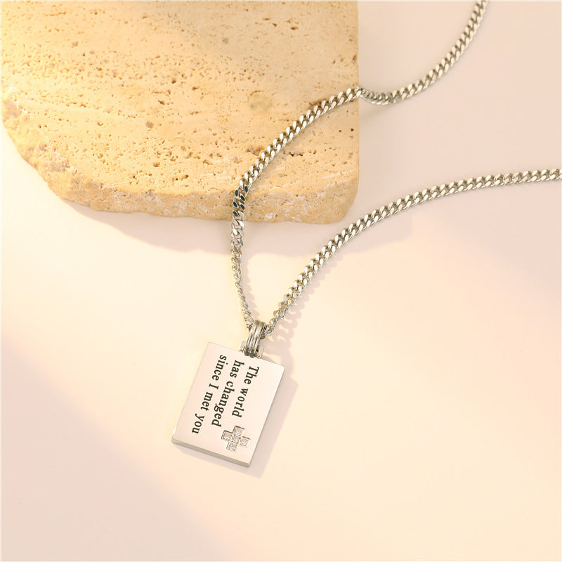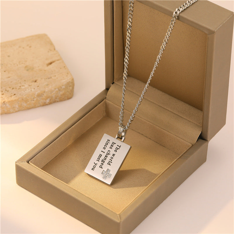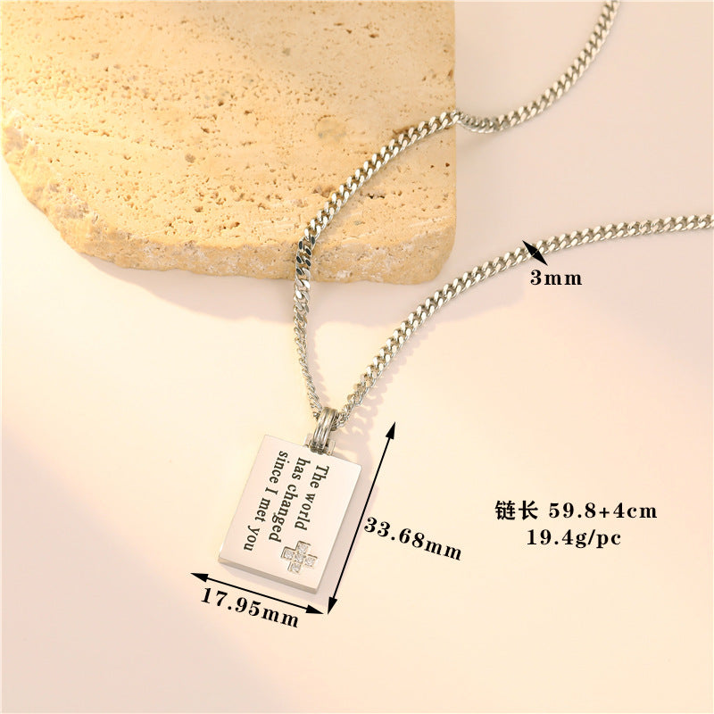 Halskette mit 2 rechteckigen Anhängern, Kabelkette, Strassverzierung, 14-Karat-GF-Halsband mit Verlängerung