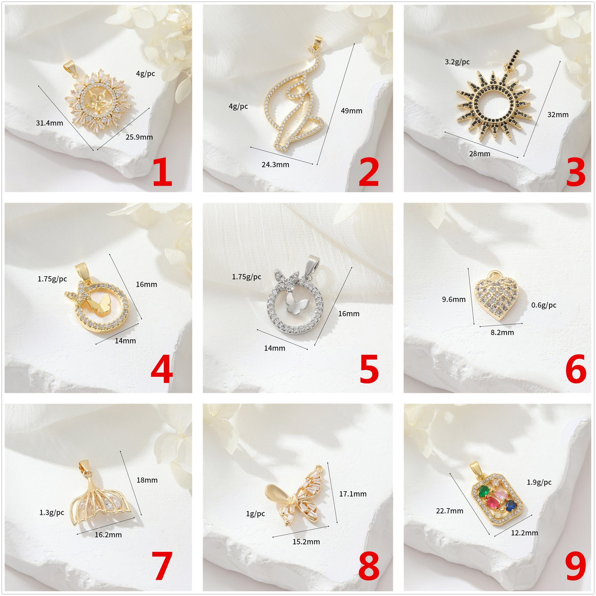 2 Blumen Katze Sonne Schmetterling Herz Meerjungfrau Rechteck Charm Anhänger Strass verziert 14K GF