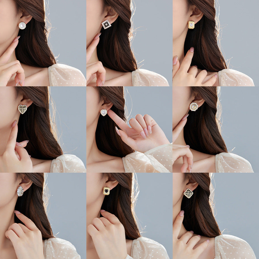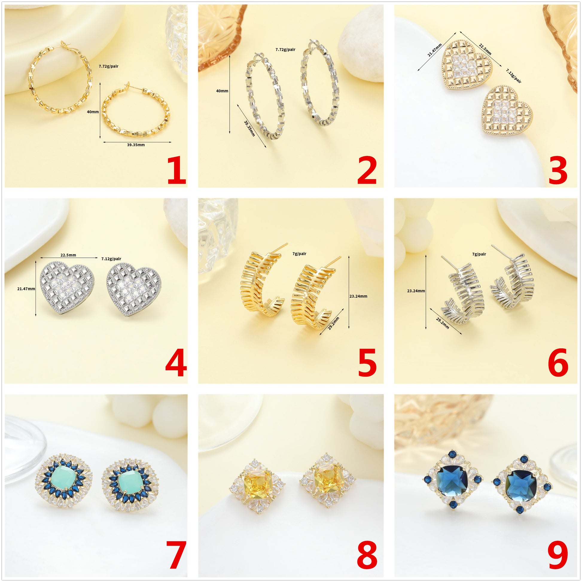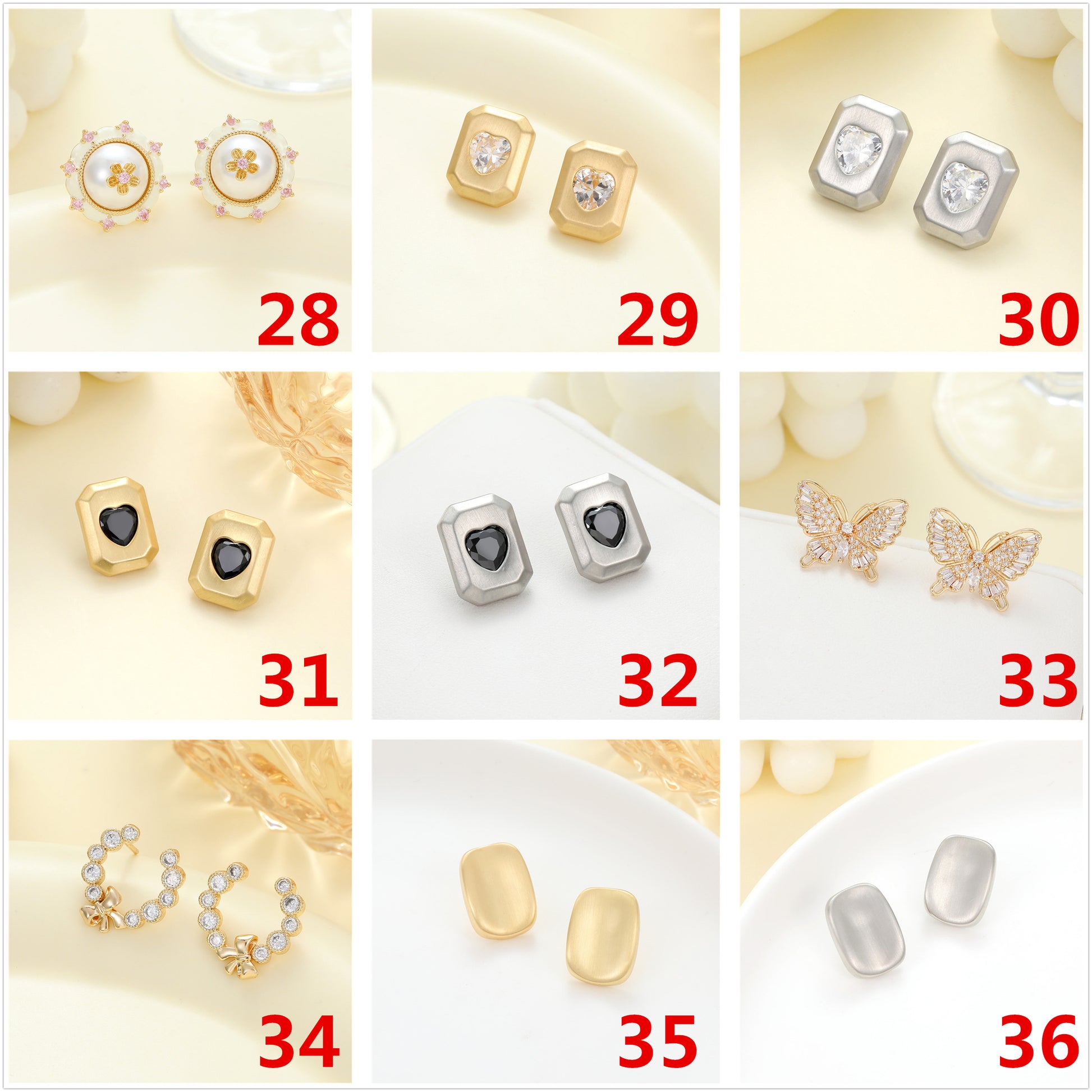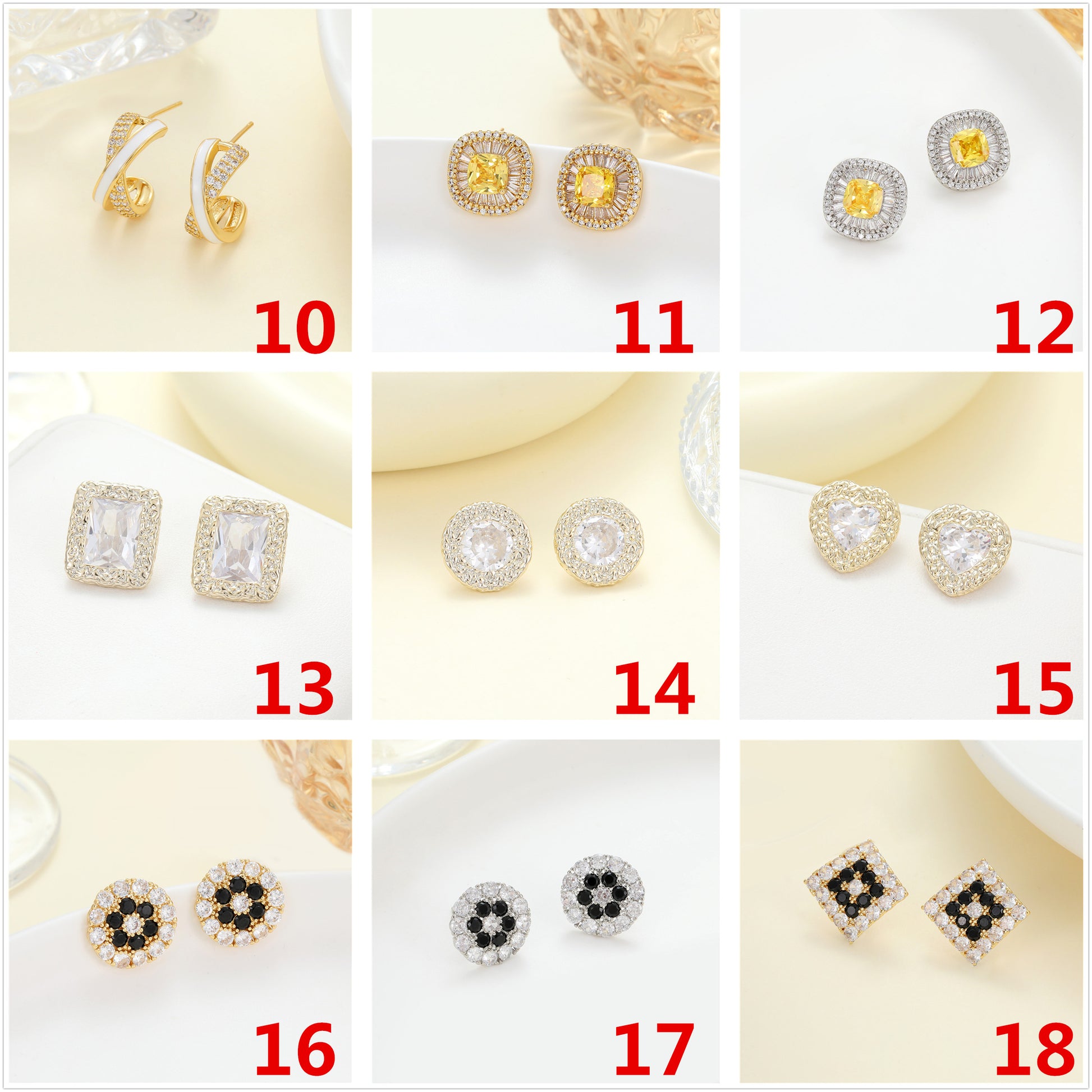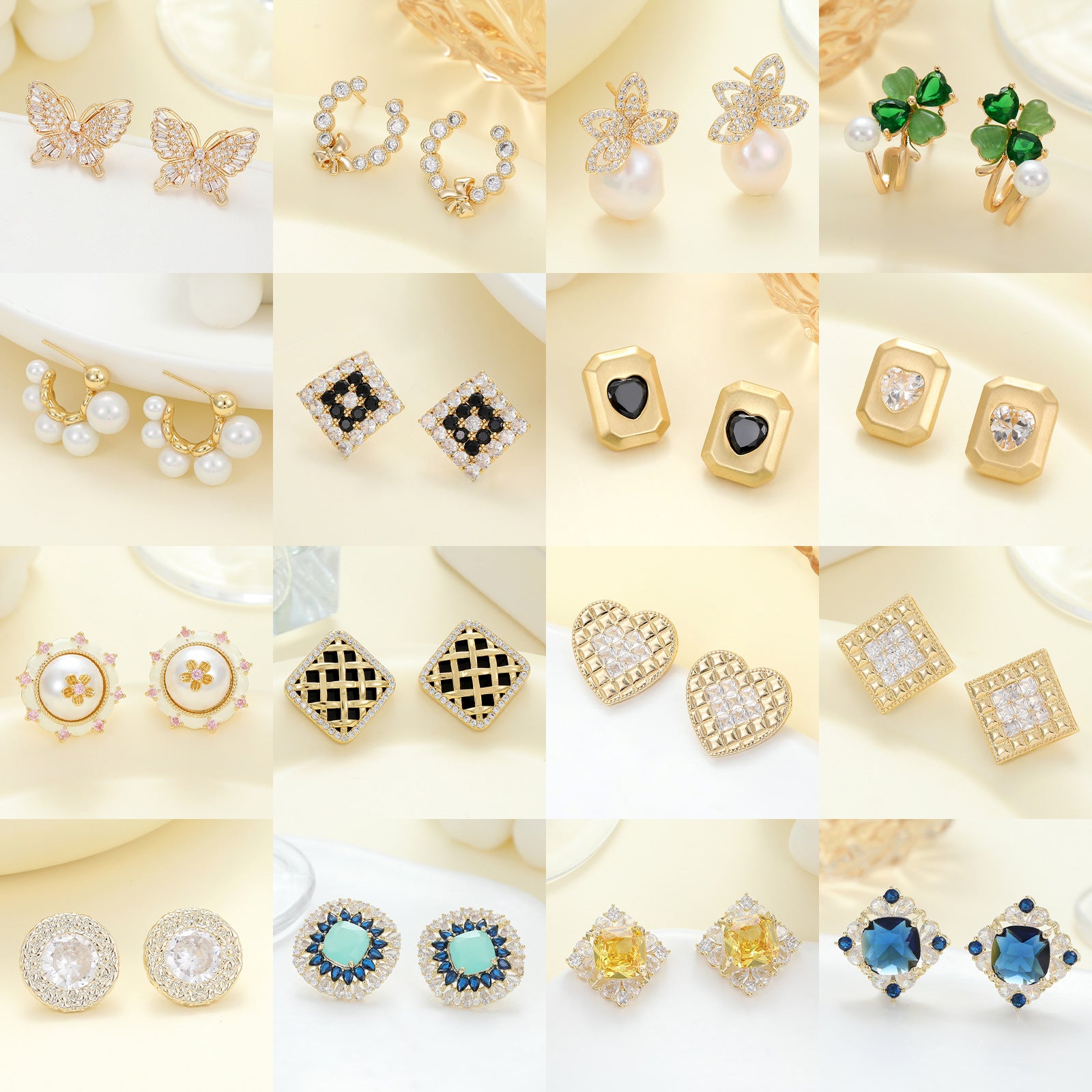 4 runde Kreis-Herzblatt-Schleifen-Rechteck-vierblättriges Kleeblatt-Ohrstecker, 14K GF-Strassverzierung