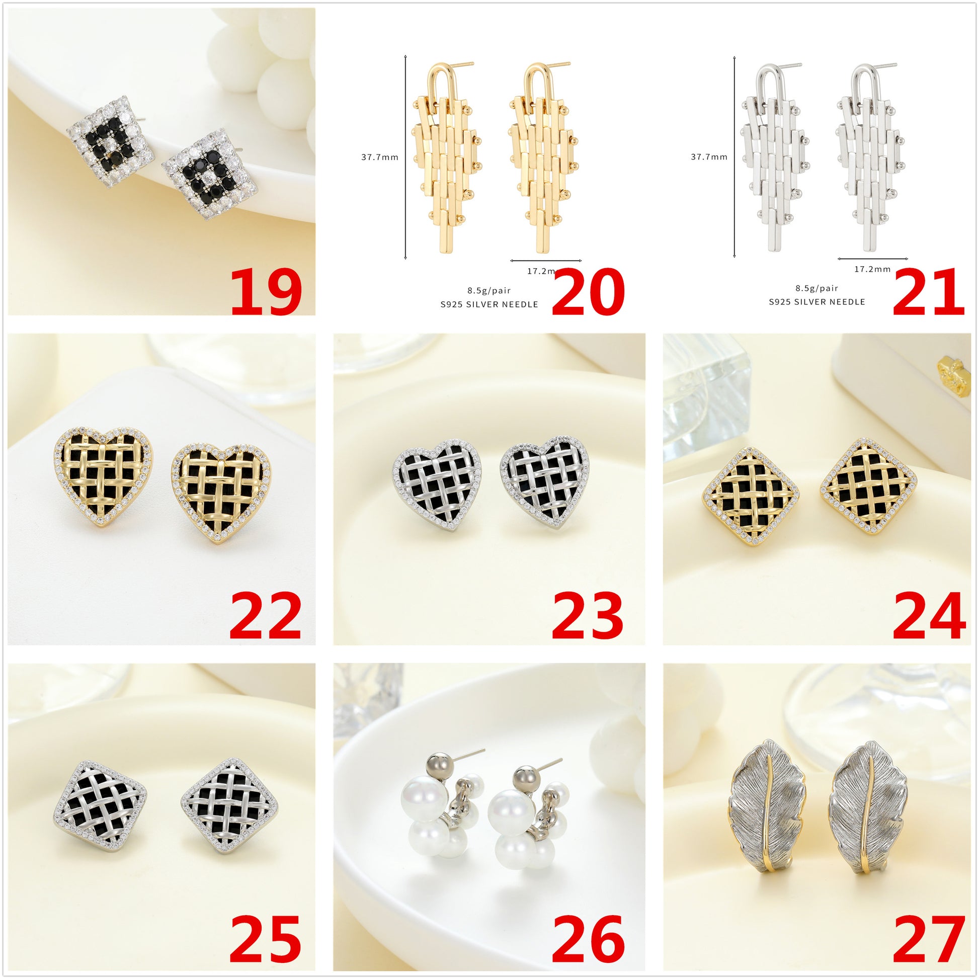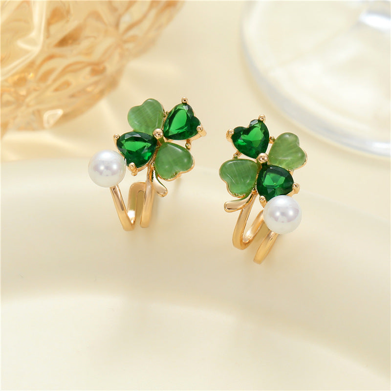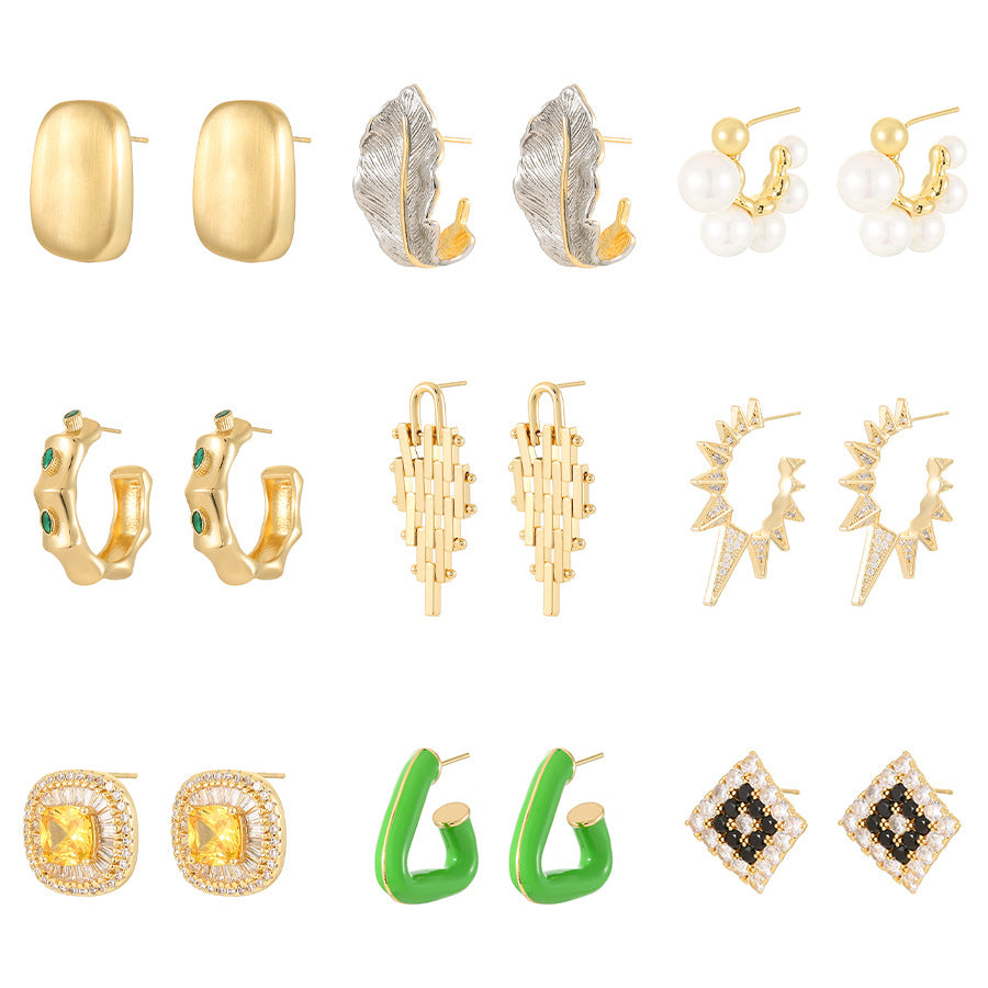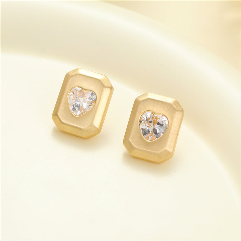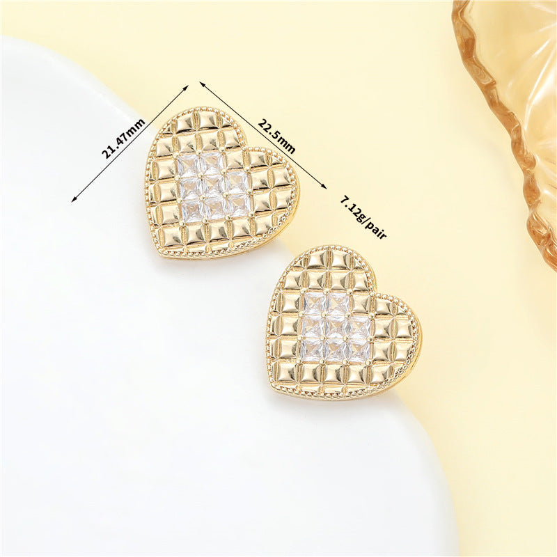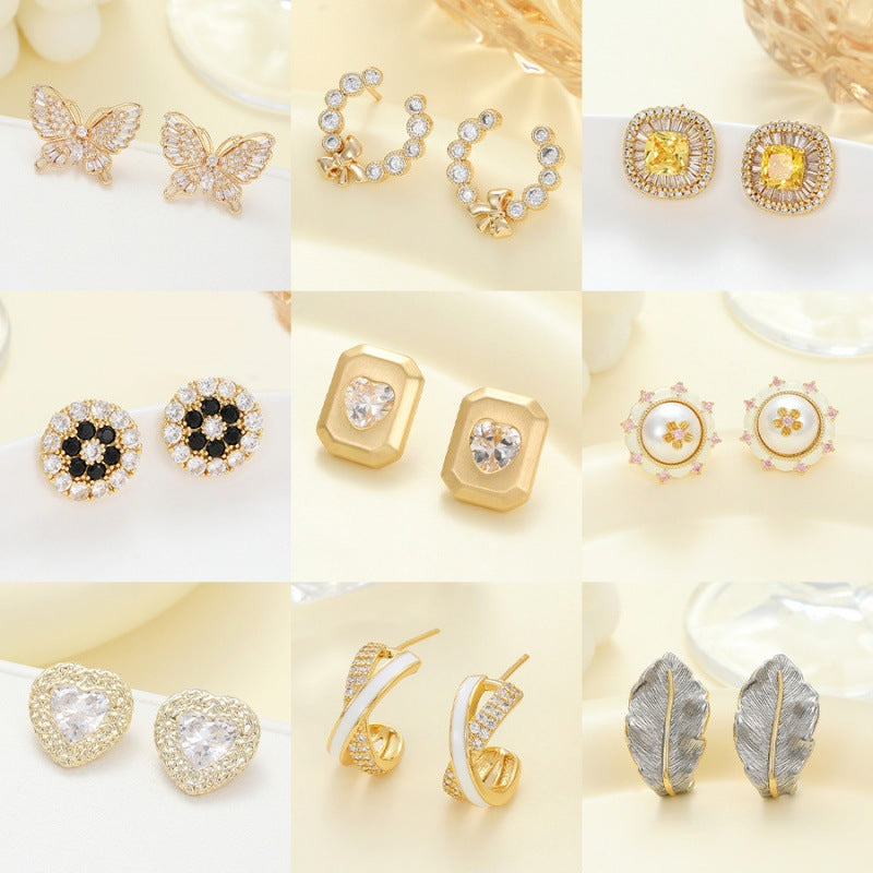 4 runde Kreis-Herzblatt-Schleifen-Rechteck-vierblättriges Kleeblatt-Ohrstecker, 14K GF-Strassverzierung